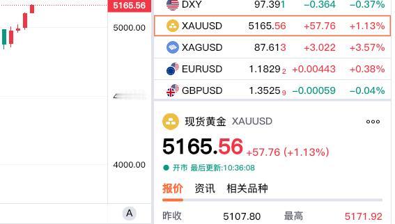 好消息, 现货黄金站上5150关口。 现货黄金报价5165.56美元, 较上一日上涨57.76美金, 涨幅为1.13%; 而且盘中最高5171.92美元。 完美符合之前的预期, 终于到了5150关口上方。