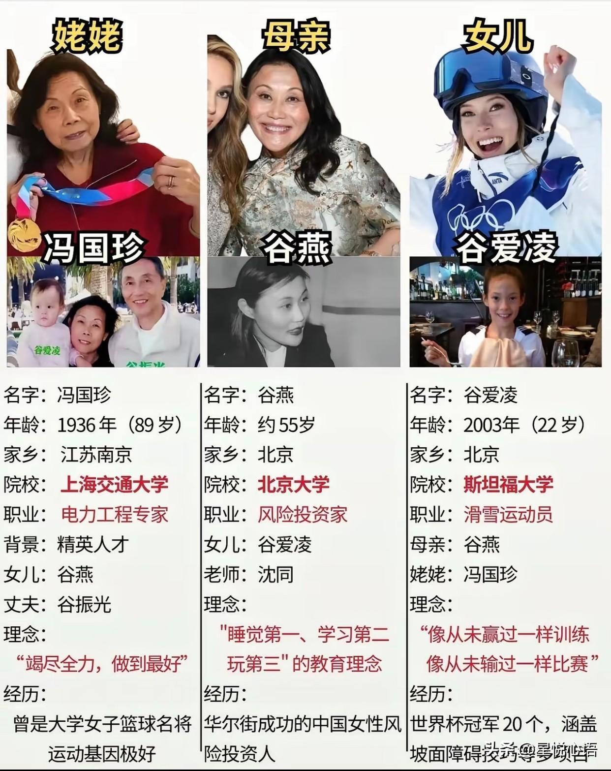 刷到谷爱凌的家族四代传承 真的被狠狠惊艳了! 她的优秀从不是单靠天赋 是几代人的眼界在托举。 姥姥是上海交大高材生、交通部高级工程师,教她扎根中国文化。 姥爷是住建部首席工程师,还是足球主力,运动基因直接拉满。 妈妈北大+斯坦福MBA,既是风投专家也是她的滑雪教练。 家人从不说逼她完美,只用心陪伴、做她的榜样。真正的家庭教育,从不是强求孩子优秀。 而是用几代人的格局和言传身教,给孩子最足的底气。这份刻在骨子里的家族传承,才是最珍贵的人生财富。