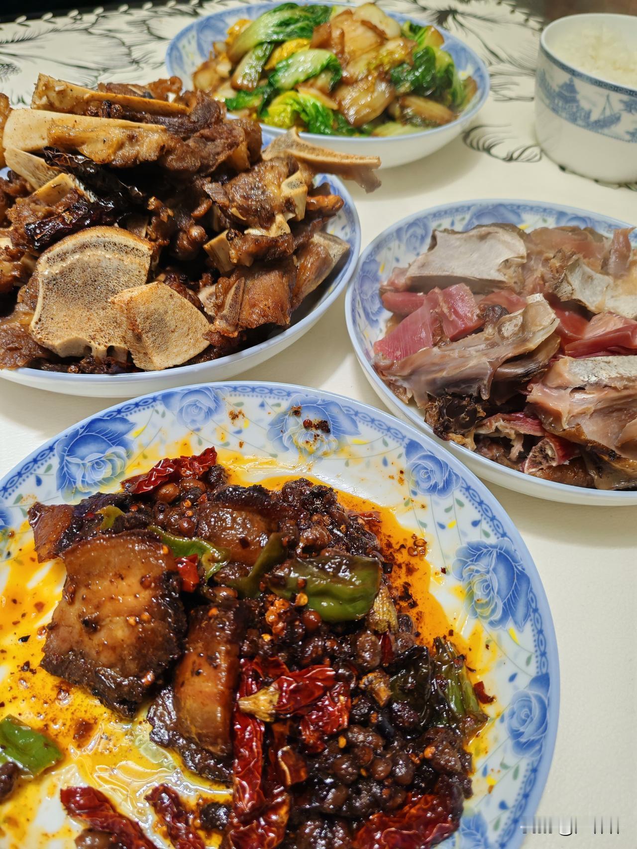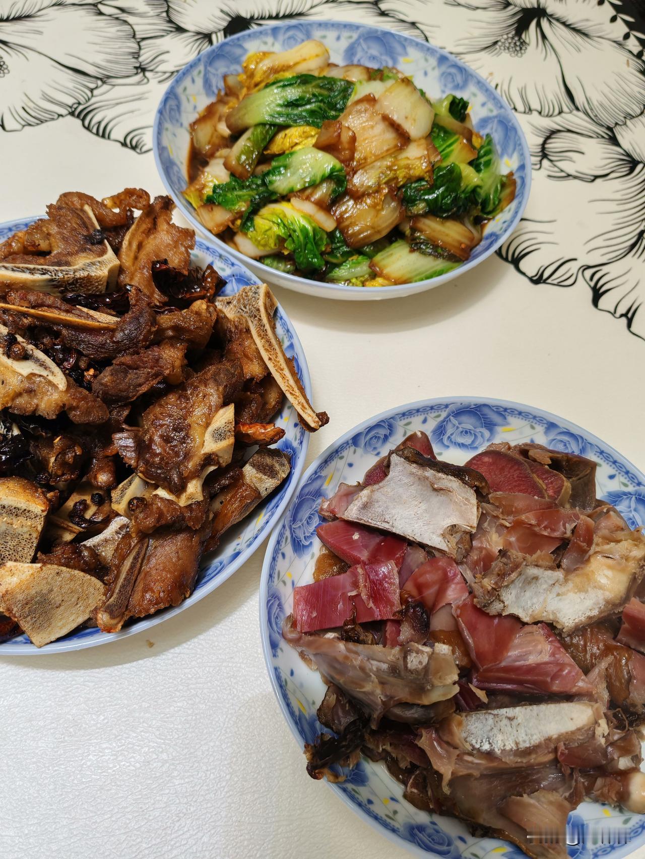 2月23日,正月初七,前面连着一周走亲访友,天天大餐,今天终于回归正常生活,小家开火煮饭。 扬扬同学自告奋勇做午饭,半小时做了几个快手菜,现在孩子还是聪明,做饭学艺根本不需要妈妈,网上打开小视频跟着学,有模有样。 做了一个炒白菜,颜色看着一般,酱油放的有点多,陕西人喜欢吃酱,味道还可以;一个干煸牛骨,他跟着视频学做的,麻麻辣辣,好吃;一个是从我娘家带回来的腊猪舌头,煮好后切片就能吃;他还很贴心的给我这个妈妈炒了一道豆豉酱香肉,只有我爱吃,他不喜欢这种味。 感觉挺开心的,孩子长大了,能主动做家务,帮父妈分担,这是一种成长进步,他做的饭菜好不好吃并不重要,重要的是他在不断学习生活技能,参与家务,必须得表扬。 你们家的孩子春节会帮着做饭吗?