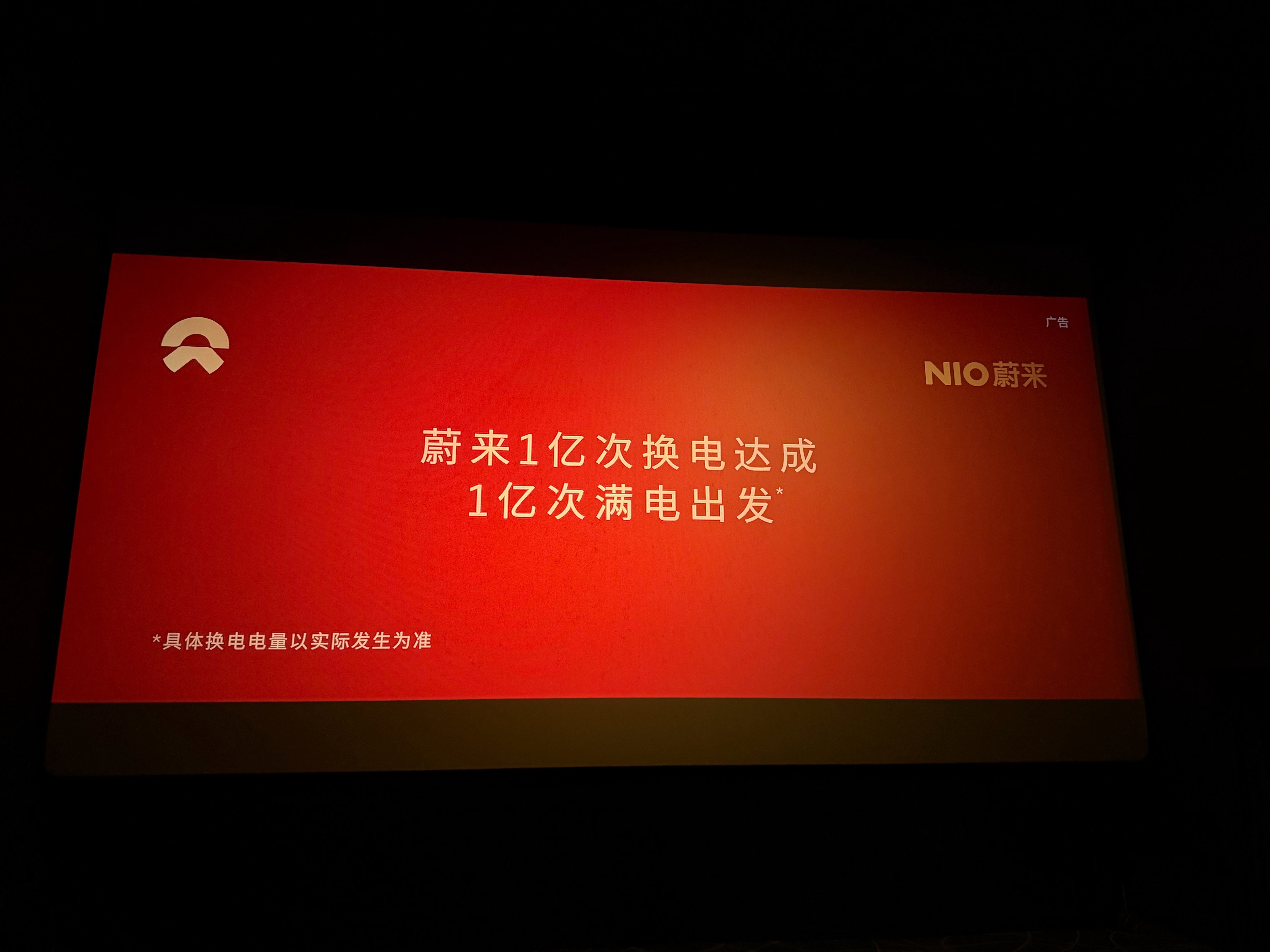 嘿,蔚来在电影开场前的广告简单明了,一亿次换电就是有底气