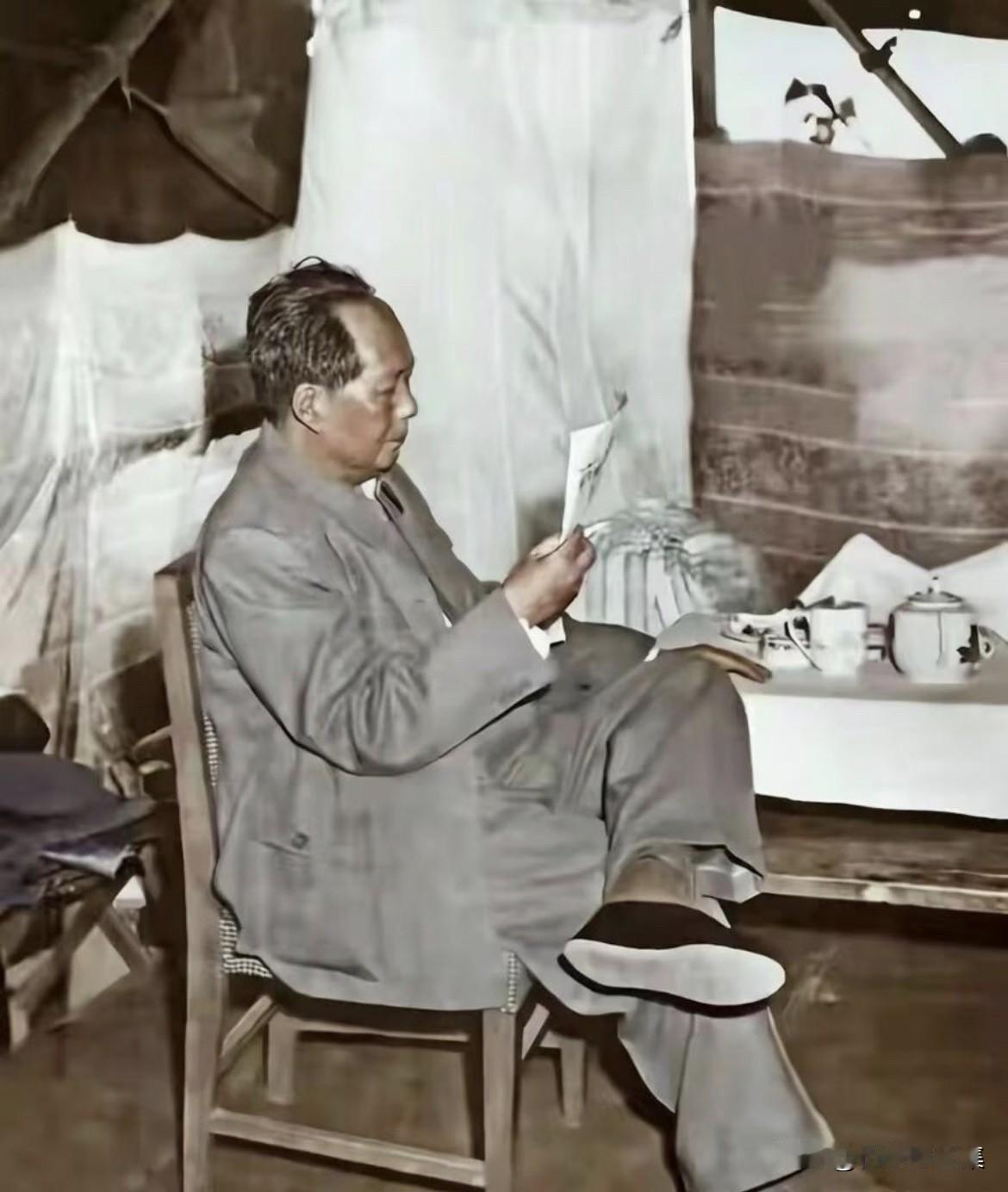 1958年5月25日,毛主席在十三陵水库劳动间隙,静坐阅读的珍贵照片。毛主席身着 白色长袖衬衫、半旧的深色长裤,脚穿一双寻常的布鞋,聚精会神地看报。在工棚休息时,毛主席对身边人谈及了 “改造自然与改造人类自身” 的深刻思考。他说:“人不应该自私自利,为自己干活就有劲,为人民服务就缺少热情和干劲……要改变几千年的私有观念很难,但我们共产党人越难越要做。”