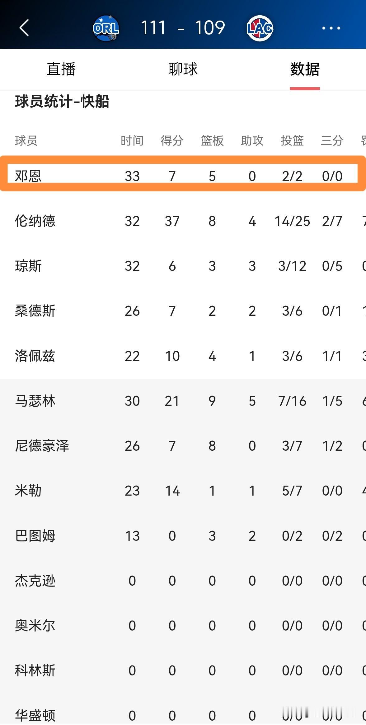 快船大将邓恩真是无法胜任球队的首发控卫!在今天快船主场以109:111输给魔术的比赛中,作为首发控卫的邓恩竟然零助攻。 整场比赛下来,邓恩首发出战33分钟,投篮2中2,其中罚球4中3得到7分5篮板2抢断,他的场上正负值为-8。 事实再次证明,在哈登离队之后,邓恩真的无法承担起首发控卫的重担。如果快船想要在季后赛中有所作为,球队必须引进一名有实力的控卫。