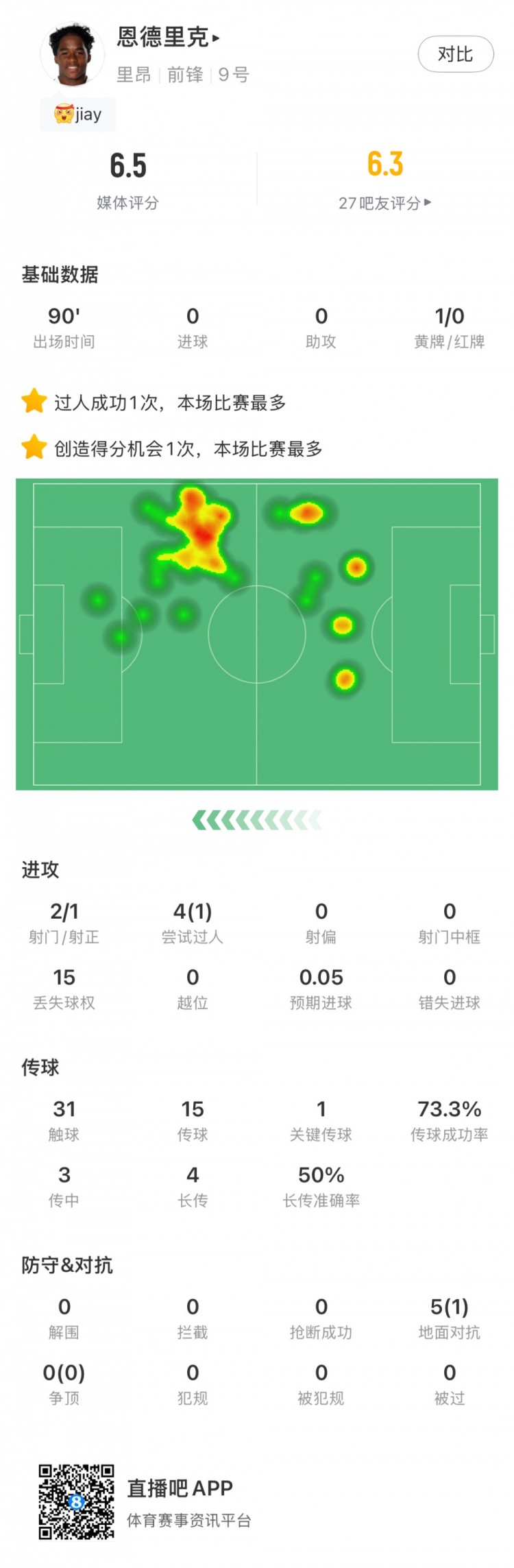 直播吧2月23日讯在北京时间今天凌晨结束的法甲比赛,里昂客场1-3不敌斯特拉斯堡,被皇马外租至里昂的恩德里克本场比赛表现不佳,最终仅获得了6.5分的评分。