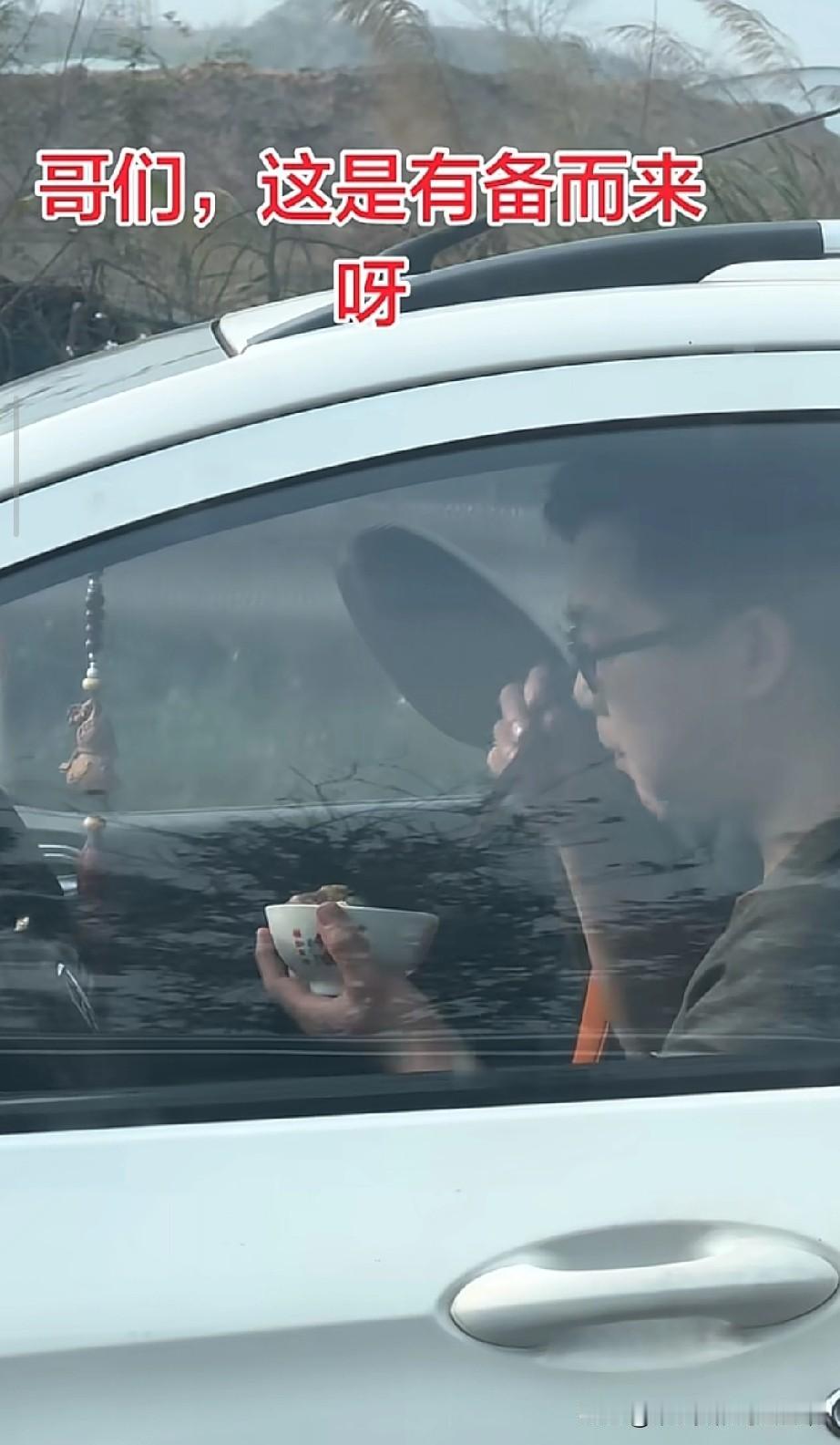 高速堵车天花板!大哥端碗用筷子吃饭,这才是返程的终极装备 谁懂啊!在高速堵到怀疑人生的时候,这位大哥直接把“干饭”仪式感拉满了! 别人在车里啃面包、嚼泡面,他却端着一个白瓷碗,拿着筷子,在车里慢悠悠地吃着热乎饭,碗里的菜看着还挺丰盛。网友调侃:“这是有备而来呀,香肠凉了吧😂”,还有人说“这装备,一看就是老堵友了”。 在这个被堵车支配的春节,有人在焦虑,有人却在享受慢时光。这波操作不仅让他成了整条高速最“稳”的仔,也戳中了无数打工人的共鸣:堵归堵,饭不能将就。 你在高速上遇到过最离谱的干饭姿势是什么?评论区晒出来,让大家开开眼!