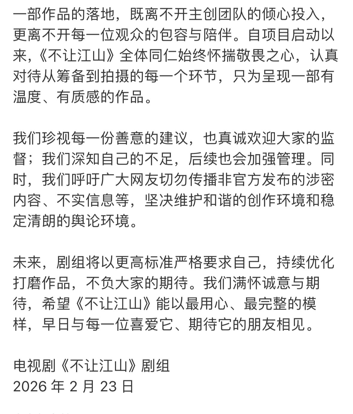 不让江山官博发声明了:否认了阴阳剧本,私下加戏,网传剧本和妆造并不是最终拍摄的版