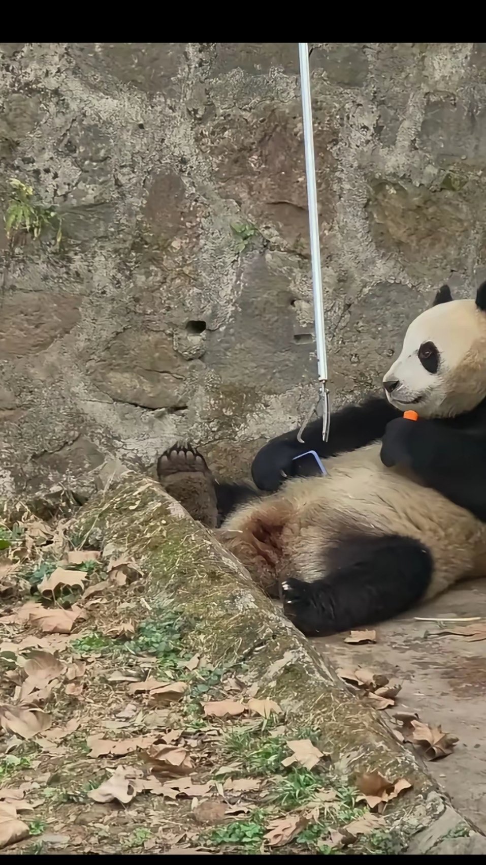 四川一熊猫捡起游客遗落手机,饲养员试图喂食吸引取回,熊猫仍紧抱不放“最后玩够了才放开”