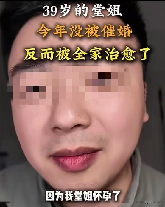 男子说家里一位39岁未婚堂姐每年必被催婚,只要有她在,催婚的战火总有她抵挡。万万没想到今年家里没有一个催她的,因为堂姐39岁居然怀孕了,没有领证没有婚礼甚至没有男朋友,但家里的亲戚长辈都非常高兴! 男子说因为堂姐的问题,每到过年家里总要闹几场。大伯看着堂姐,总是忍不住催婚,这几乎是长辈们的核心话题。 没想到堂姐居然悄摸生的怀孕了,大伯得知这一消息,在过年前还大摆酒席庆祝。 吃席那天家里的亲戚全部都来了,每个人都盛装出席,非常重视和珍惜,忙前忙后的操持,都穿的十分隆重。 亲戚带来的礼物和礼品堆积成山,每个人还单独给了堂姐红包,大家都十分高兴,好几个长辈甚至都喝多了。 没有人问堂姐孩子的父亲是谁,也没有人问孩子是怎么来的,每个人看着堂姐都笑得开心,发自内心的祝福。 男子和堂姐聊天,发觉堂姐也温柔了好多,没有那么多对抗的情绪。堂姐说以前每年被催婚的时候,总觉得是在刁难我。 如今知道堂姐怀孕后,再也没提过婚礼,只是由衷的为我高兴,用心的办这个仪式。以前过往所有的不愉快,在今天全都变成了爱。 男子感慨说,有时候家人的爱或许很拧巴,但是只要你回头,他们一直都在。 有人说,因为在这个世界上,她有了除父母之外最亲的人的陪伴,她不是孤单的活在世上,家人以为你有了依靠,所以真心祝福!