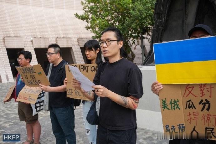 还是香港同胞认知比较高,几名香港人在街头举牌表达对乌克兰的支持,并引来众人围观拍照。 几名乌克兰支持者“表示”:反对美俄瓜分乌克兰。捍卫乌克兰人民自由。