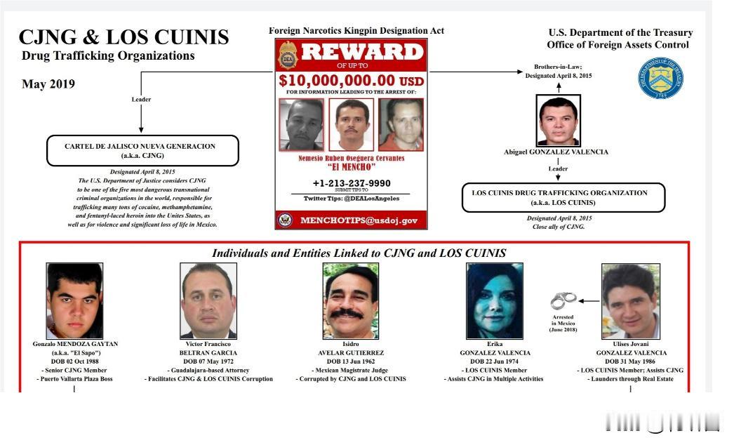 牛油果园走出来的毒枭,他带领的哈利斯科新一代(CJNG)目前已向墨西哥当局宣战。一文读懂艾尔·门乔的发家路,艾尔·门乔本名叫内梅西奥·奥塞格拉·塞万提斯,他年轻时与其父共同经营一片牛油果果园,他曾把牛油果改为种植大麻甚至跑到美国贩毒而被捕入狱(前后三次),出狱后他回国加入墨西哥军警。 加入警队之后,他前面几年上班很拼命,属于警队的未来之星,玩玩没想到他被策反了。 他脱掉警服加入墨西哥金海岸贩毒集团,随着该贩毒集团被打击后,他另起炉灶,他凭借着他当警察积累的人脉和反侦查能力,迅速壮大他创办的CJNG:他把毒贩集团企业化管理,设立从生产到运输再到分销生态效益链。而他的组织,大部分招募退役的军警,组织纪律性非常强,还衍生一整套的情报分析和渗透系统。 那么说。CJNG的作战能力怎么样?他们的作战能力,普通墨西哥军警打不过他们,十年前他们曾用肩扛式导弹击落政府军的直升飞机,声名鹊起。可以这么说,这支队伍拉出去,柬埔寨王家军都不一定能顶得住。 艾尔·门乔算是拥有财富和权力,他在他老家盘踞多年,关系网渗透进了政府各部门,他每次都能安全逃脱,纵使他的家人都被逮捕。墨西哥当局对他束手无策,美国更是悬赏1600万美元取他项上人头。 如今,美国连1600万都省了,留下了一个天大的烂摊子扔给了墨西哥。