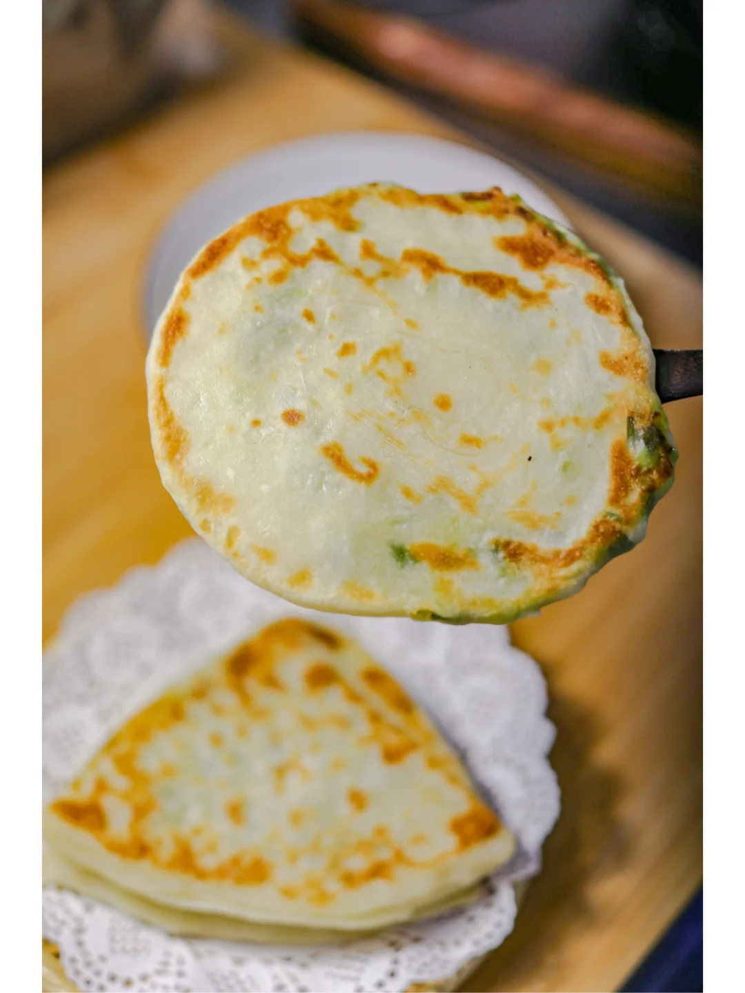 🌈烙好的葱花饼软嫩酥脆,咬一口下去满口的葱花香,小朋友很喜欢~