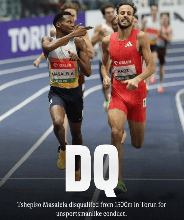 裁判认为马萨莱拉在冲线前的庆祝动作不当,此举违反了世界田径规则第7.1条——该条款规定运动员及接力队必须以真诚的态度参与比赛,严禁任何违反体育道德或不正当行为,违者可能面临警告或取消资格的处罚。