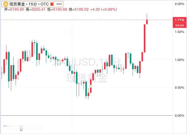 现货黄金再度突破5200美元 现货黄金向上攀升至5200美元/盎司,这是自1月30日以来的首次,日内涨幅接近2%。金价行情 [震惊][爱慕]预计开盘吃鲍鱼