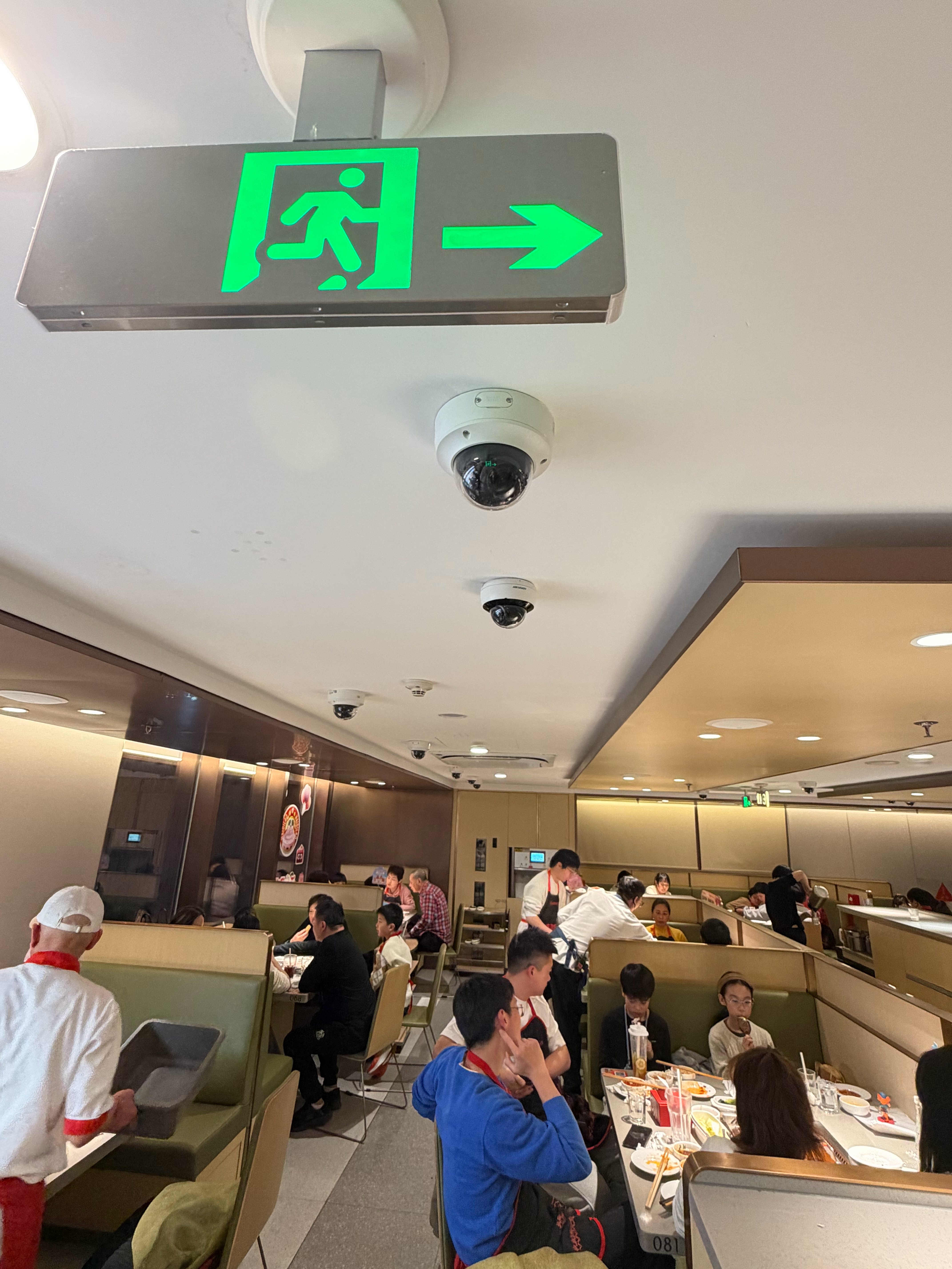 今天吃个海底捞发现店里有巨多摄像头,一个店里有几十个摄像头,每桌上面都有,问了店