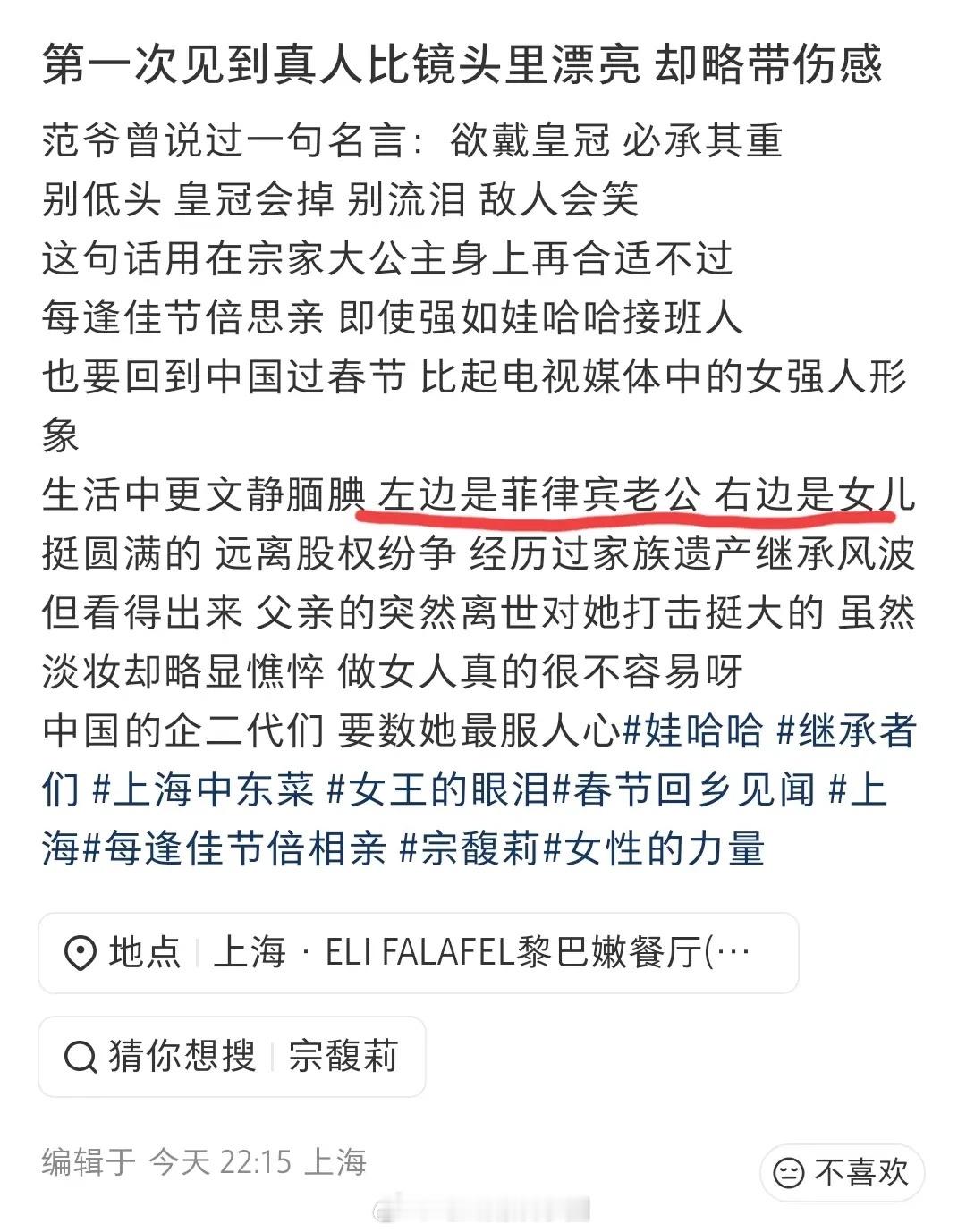 宗馥莉现身上海高级餐厅,和外籍男子聊天吃饭 带一女孩像一家三口!