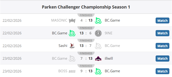 虎扑02月24日讯BC.Game在首届Parken挑战者锦标赛的征程戛然而止,他们在双败淘汰制的季后赛中接连负于ECSTATIC和illwill,惨遭淘汰。