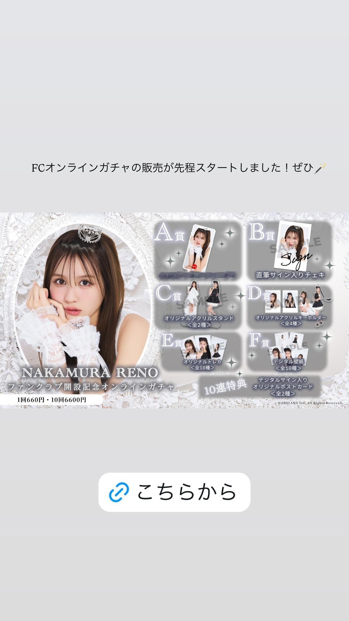 中村麗乃「ファンクラブ開設記念オンラインガチャが本日18:00より始まりました!第一弾ガチャのテーマは " Black & white "。こだわりをたくさん詰め込みました。是非よろしくお願いいたします🪄」