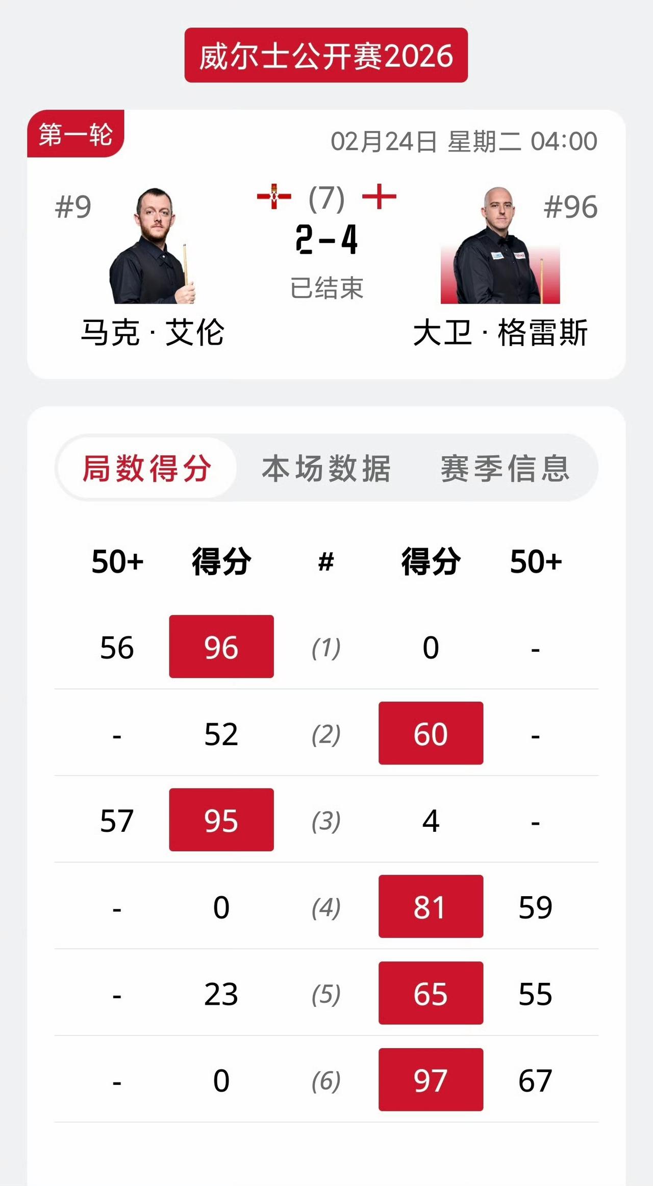 2-4!2026斯诺克威尔士公开赛,艾伦首轮出局,15万英镑大奖有点悬! 威尔士