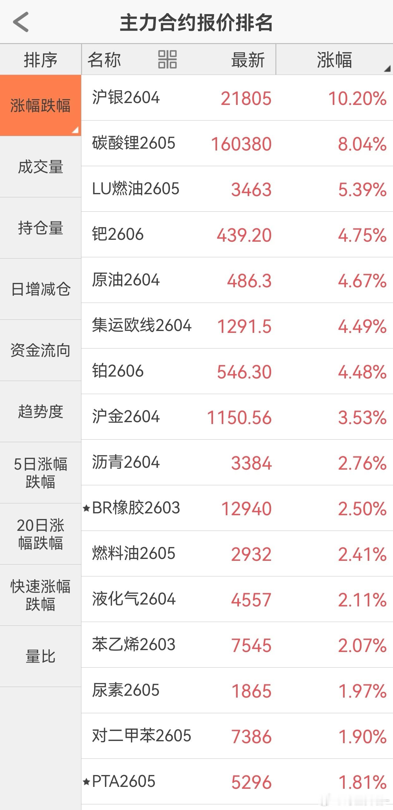 商品涨跌榜,黑色系与金属、化工形成两极分化。期货