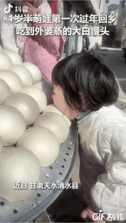“1岁半的宝宝上人民日报了!”甘肃,一名1岁半的女宝头一次去外婆家过年,上一秒还好奇地盯着蒸笼,不料,下一秒她就迫不及待将肉嘟嘟的小脸贴了上去,啃咬外婆刚蒸好的大白馒头!网友:年味在这一刻具象化了! 说实话,当这段视频被人民日报收录的时候,我一点都不意外。 因为那个画面,实在是太戳人了。 甘肃天水,腊月的清晨,灶台上的蒸笼刚掀开盖子。热气轰地一下散开,像一团白云炸裂在厨房里。站在旁边的小姑娘才1岁半,压根不知道什么叫矜持,什么叫规矩。 她只知道一件事:那团白雾里,藏着让她走不动道的东西。 这是2025年春节,小家伙头一回跟妈妈回外婆家。 当那一笼个头硕大、表皮喧软的大白馒头被端到门口晾置时,接下来发生的事,让在场所有大人都愣住了。 她没伸手去抓,也没回头喊人帮忙。她摇摇晃晃地凑过去,像被什么东西牵引着一样,直接把肉嘟嘟的小脸贴向了还在冒热气的馒头。 然后,就是那个让千万网友破防的瞬间——她张开还没长齐牙的小嘴,对着馒头就是一口。 这可不是什么摆拍。 视频里能看到一场特别有意思的"家庭博弈"。 站在旁边的父亲本能地伸手想拦。在他的潜意识里,这是"没规矩",是"不卫生",是从小被教育出来的条件反射。 但外婆的反应完全不一样。 那位满脸笑意的老人一把拦住了女婿的手,捂着嘴笑得眼睛眯成了一条缝,甚至弯下腰逗那个正陶醉在麦香里的小家伙:"好不好吃呀?" 看到这儿,你可能觉得这就是个温馨的家庭小插曲。但背后的故事,比你想象的要厚重得多。 李女士结婚两年了,这是她婚后第一次回娘家过年。 早在2024年腊月初,母亲就打来电话,语气里带着试探和期盼,一定要女儿带着女婿外孙女回来团圆。等到李女士腊月底踏进家门,发现院子里的花草、闺房里的陈设,竟然和出嫁前一模一样,连位置都没变过。 你品品这个细节。 两年了,老人家什么都没动,就等着女儿回来的那一天。 所以那个被孩子啃了一口的馒头,对于外婆来说,哪里是什么食物,分明是迟到了两年的团圆。 视频传到网上后,评论区炸了。 有人感叹:"活了六七十岁,头一次见这么白这么圆的馒头。" 这话听着夸张,其实透着心酸。现在超市货架上那些机器压制的馒头,整齐划一,白得晃眼,却冷冰冰的,跟塑料似的。而视频里那种大锅蒸出来、带着气孔、散发着麦芽甜香的手工馒头,早就成了稀缺品。 城里的孩子,有几个见过这阵仗? 但更让我感慨的是,大家到底在感动什么? 有人说得特别准:"年味在这一刻具象化了。" "年味"这个词,说了多少年了,虚得很,看不见摸不着。但当一个还没学会看手机、没学会刷短视频的1岁半孩子,出于最原始的本能去亲近一笼热气腾腾的食物时,这种生命力,瞬间击穿了所有成年人的情感防线。 你想想现在的孩子,手指头划屏幕比拿筷子还溜。能对一个朴素的大馒头产生这么浓厚的兴趣,这本身就是一种久违的纯真。 那一刻,网友们透过屏幕,似乎都闻到了那股味道。 那是小时候守在灶台边,眼巴巴等着锅盖掀开的味道。是刚出锅的馒头烫手,不得不在左右手之间倒来倒去,却还是忍不住咬下一口的味道。是外婆笑眯眯地看着你狼吞虎咽,嘴上说着"慢点吃",手上却又递过来一个的味道。 外婆家的小院,忙碌的大人,飘香的厨房,还有那个不知天高地厚、只知道馒头真香的小娃娃。 这一切组合在一起,比任何精心策划的贺岁大片都要动人。 说白了,所谓的"年",不就是为了这一口热乎气,和那张凑过来的笑脸吗?