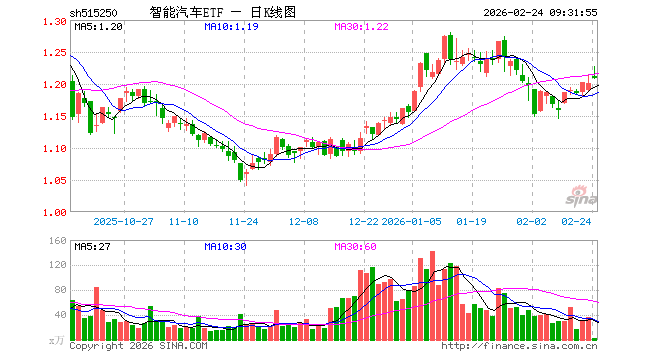 智能汽车ETF(515250)开盘涨1.00%,重仓股拓普集团涨1.78%,豪威集团涨1.02%