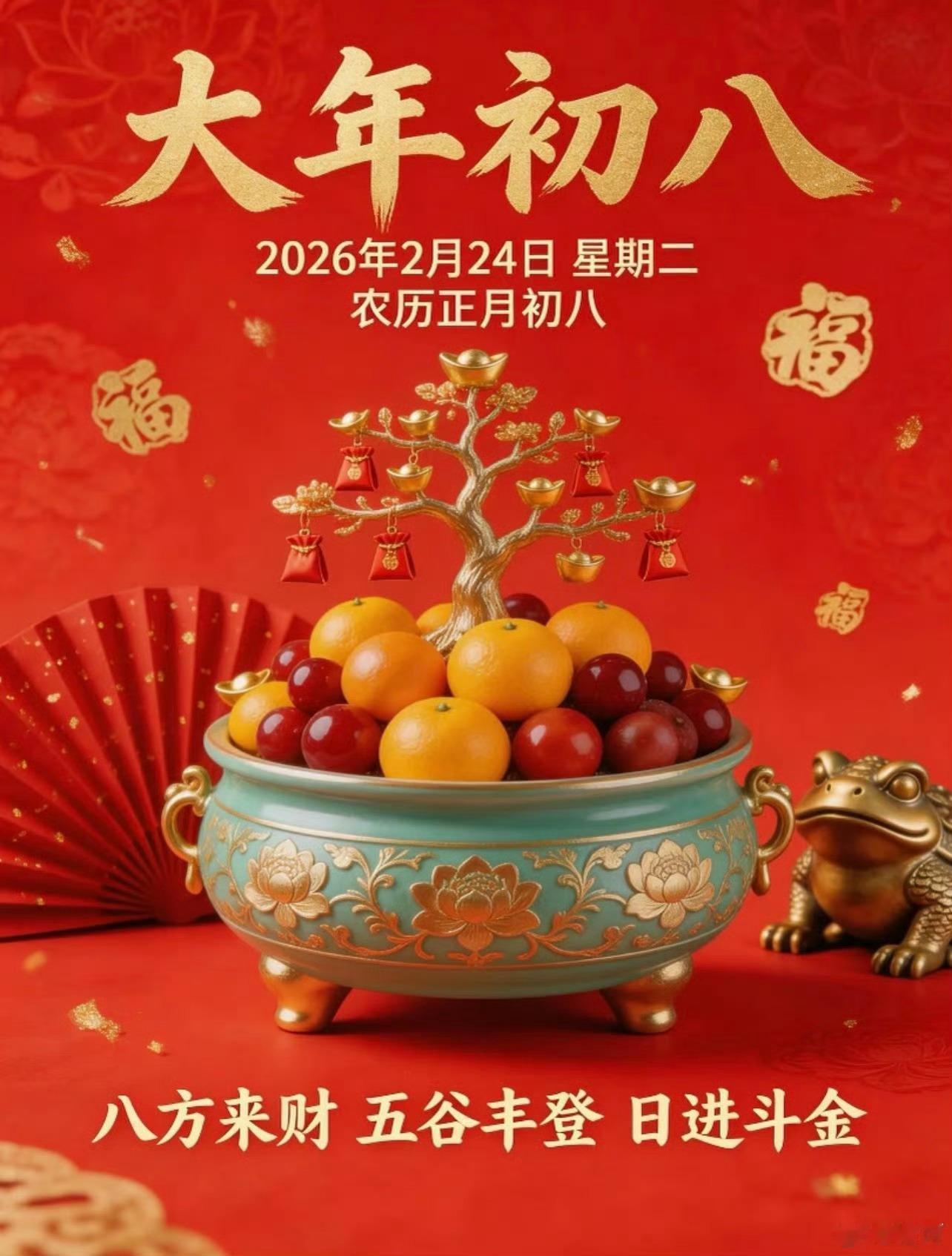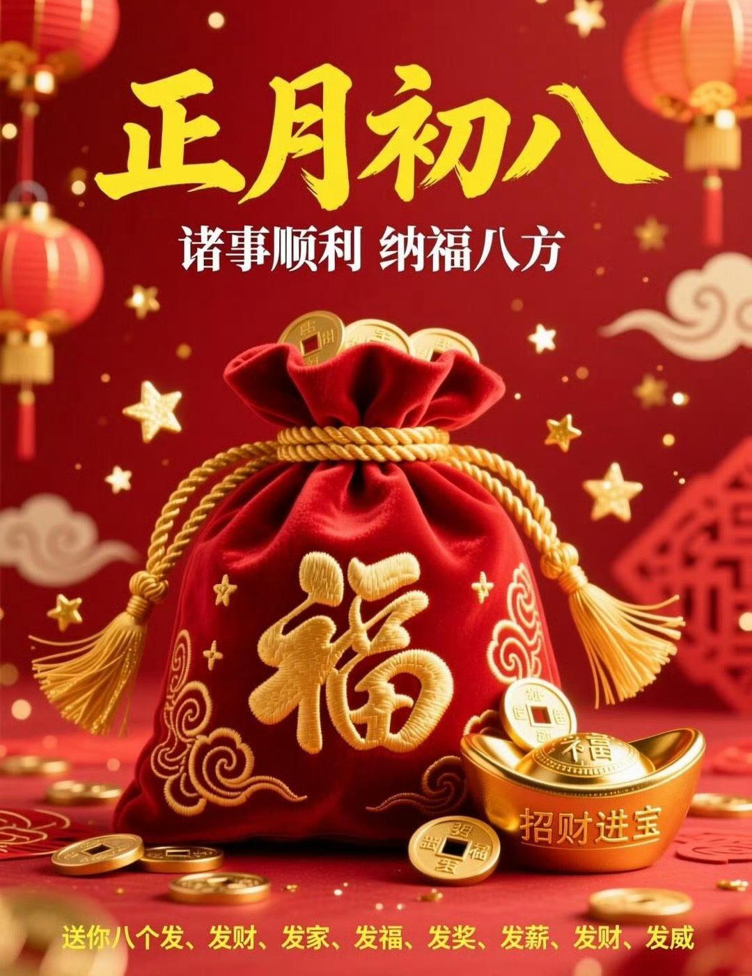 今天是大年初八超级发财日,财运滚滚来,大家一起发!希望财神保佑大家财运亨通,正财