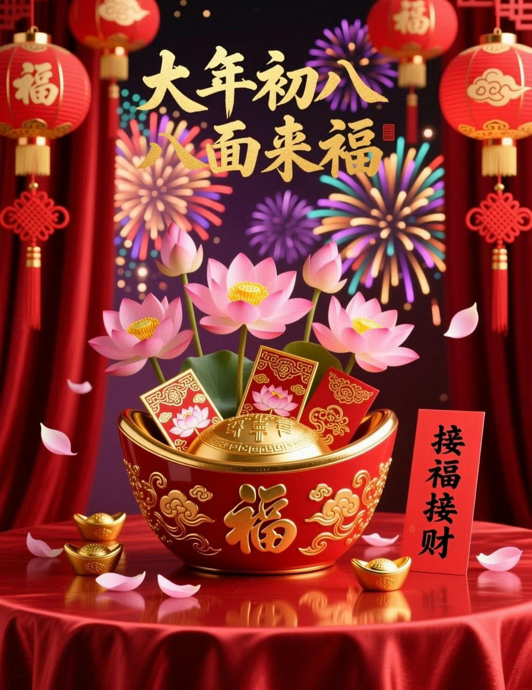 今天是大年初八超级发财日,财运滚滚来,大家一起发!希望财神保佑大家财运亨通,正财、偏财、横财、财源滚滚来! 开工大吉!财源滚滚来祈福