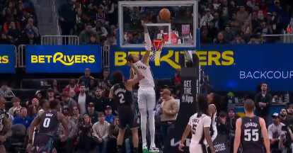 美国篮球媒体ClutchPoints更新社媒:“文班亚马对坎宁安的封盖简直离谱,他就像外星人一样。”