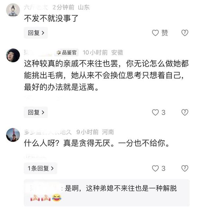 这下年过不好了!安徽这个姑嫂因为红包的事和亲戚大吵一架,好好的团圆年,愣是闹得鸡飞狗跳,年都过不痛快 事情其实特别简单:出嫁的姑子回娘家探亲,给大哥家3个孩子、弟弟家2个孩子,每人都包了500块的新年红包。本来是高高兴兴的心意,结果弟媳当场就脸黑了 她认为,大哥家3个孩子拿了1500,自家2个孩子只有1000,合着姑子就是偏心大哥?当场就发难,说红包就该按家平分,不然就是明摆着不公平 姑子也直接火了,当场回怼:我这红包是给孩子的,每个孩子都一样,哪里错了?嫌少你自己再生一个啊 就这么一句话,原本热热闹闹的客厅瞬间炸了锅,姑嫂俩你一言我一语吵得不可开交,好好的团圆饭也闹得不欢而散,两家人都憋了一肚子火 这事传到网上,评论区直接吵翻了。有人说弟媳太斤斤计较,红包本来就是给孩子的心意,一人500一视同仁,本来就是最公平的,非要按家算,纯属没事找事;也有人叹气,说过年发红包就是图个吉利,为了这点钱伤了几十年的亲情,真的太不值了 说实话,我是完全站姑子的,红包从来都不是给大人的人情往来,是给孩子的新年祝福,每个孩子拿到的钱都一样,在孩子眼里就是公平,根本谈不上什么偏心 当然也有网友说这种爱较真的亲戚不如不来往,但我觉得也没必要,本来现在大家平时都忙工作,一年到头也就过年能凑在一起吃顿热乎的团圆饭,血浓于水的亲情,没必要因为一时的赌气就彻底断了联系 说到底,红包的意义从来都不是钱数多少,是那份新年的心意和祝福。非要把亲情和钱绑在一起,算得明明白白、锱铢必较,才是真的丢了过年的意义,也寒了亲人的心 对此您是怎么看的?
