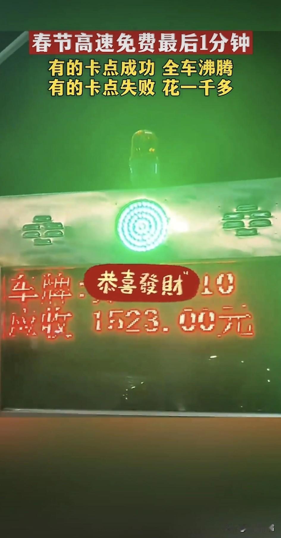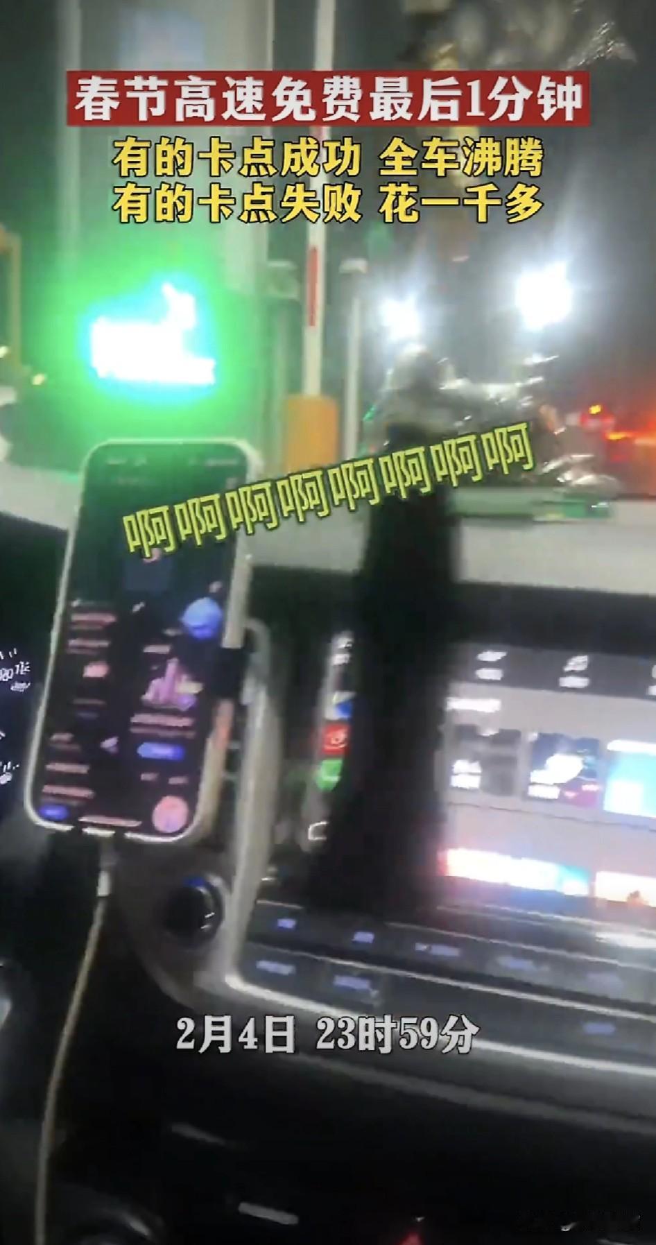 高速上的速度与激情 高速免费最后1分钟,那场面简直太刺激!有人为省高速费拼了老命。魏先生2100公里的路程,11点59分才驶出收费口,成功省了1300元。可陈先生就没那么幸运,晚8秒付了五百多,失眠到天亮。 收费员也超暖心,扯着嗓子喊“快快快”,比车主还着急。武汉龚家岭收费站,一台蒙A牌照车压哨通过,省了一千多。不过工作人员也提醒,别为赶时间超速,时间不够就近下高速再上,安全第一。打工不易,省点是点,但平安返程才是最重要的! 春运高速免费