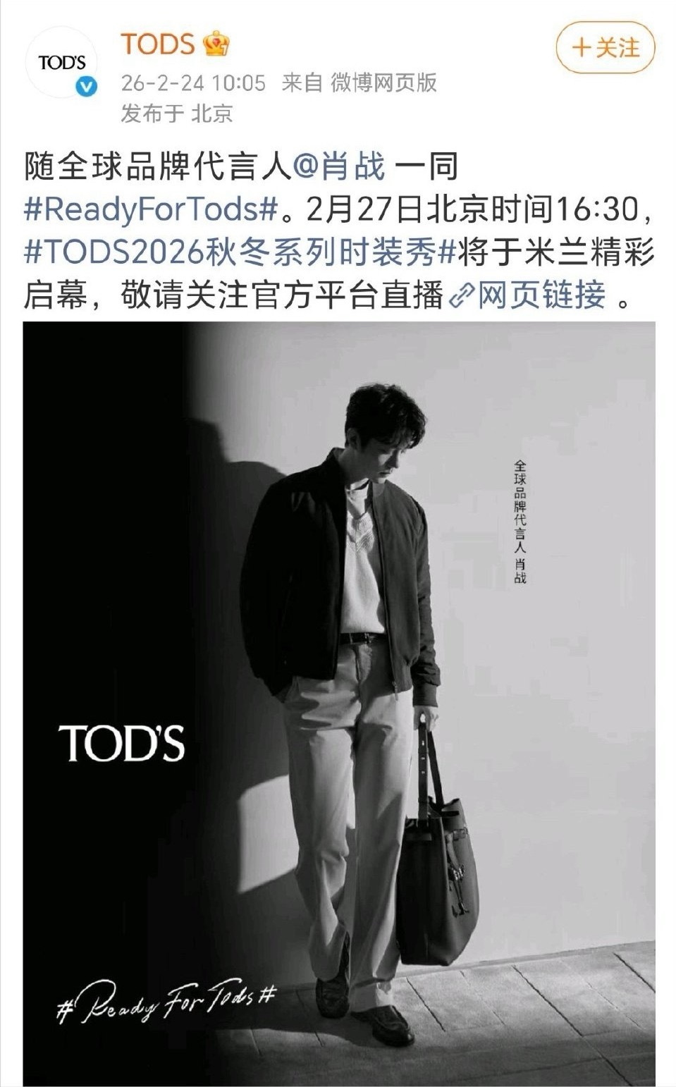 米兰时装周Gucci和tods大秀即将开始,官博直接放出肖战预热图