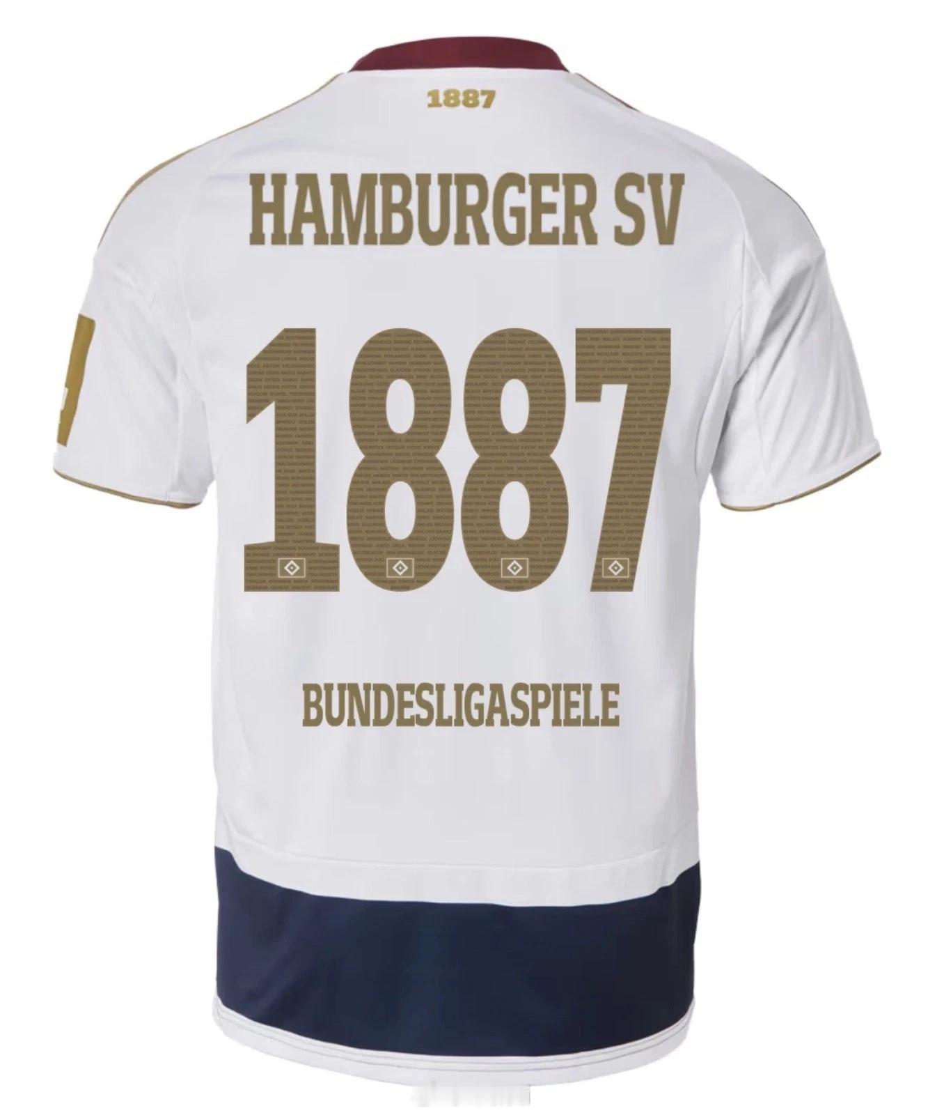 神,汉堡日前推出的特别版球衣,在发售前两天就在实体和网上Fanshop售罄了20000件,后来又在网上Fanshop收到了大约50000个追加订单,从而成为了汉堡队史最受欢迎的球衣。这件球衣是为了纪念成立于1887年的汉堡完成了1887场德甲比赛,属于一个颇为有创意(无厘头)的特别版概念。也不知道究竟是出于什么原因,反正就是在汉堡球迷当中大受欢迎。在上周五晚做客美因茨那场第1888场德甲比赛中,汉堡就穿着了这件球衣(也不知道为啥不选择主场对柏林联的时候穿,那才是正儿八经的第1887场,在客场穿特别版球衣也是比较少见)。汉堡官方披露,90%的顾客选择了印号,而且有一半是选择了印上“1887场德甲比赛”的印号。德甲