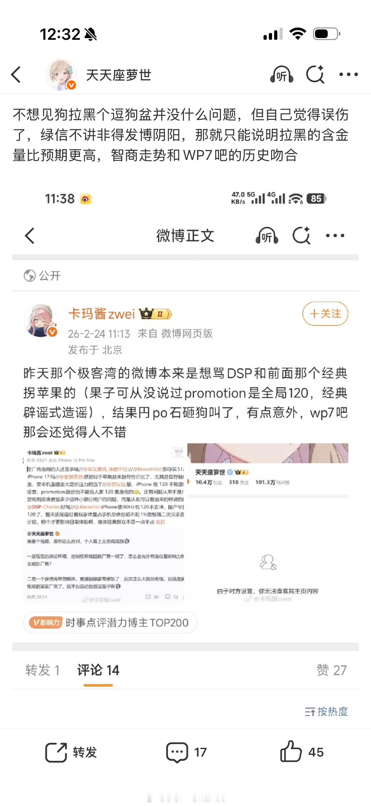 极客湾的事情讨论到现在已经不是用户体验做的咋样,而是谁比谁高贵,这一点还是户圣拿捏的准。产品数据斗蛐蛐太基础了,还得是精神道德斗蛐蛐。