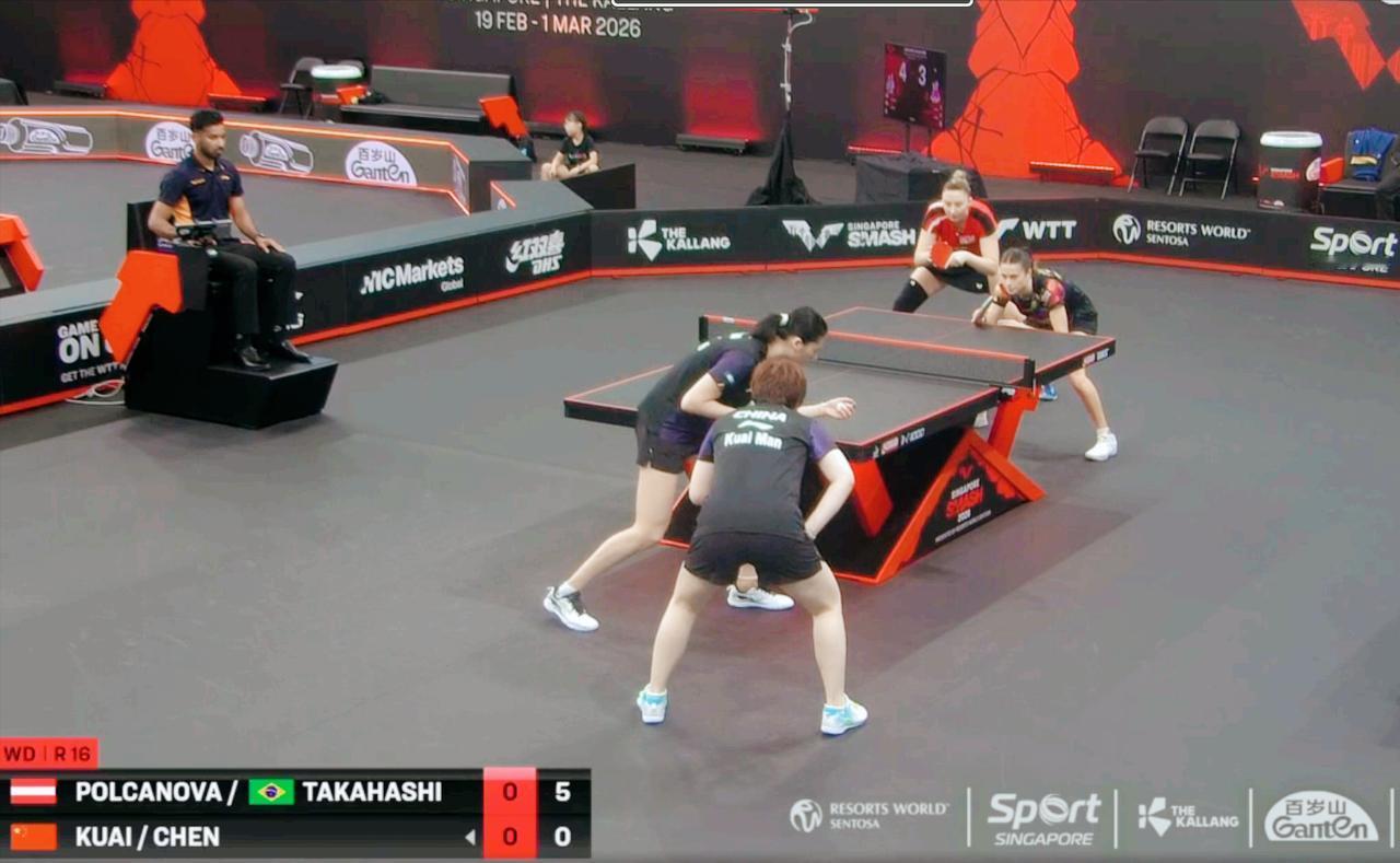 我去!蒯曼/陈熠被打懵了! 高桥/大白鹅开局5:0, 其中3个是擦网擦边球。 陈熠和蒯曼都懵了, 对方运气太好了吧。 好不容易追到了 3:5, 对方又一个擦边, 蒯曼/陈熠这下真懵了。 5:9的时候, 大白鹅眼部被球擦了, 给了一个缓冲。 但是最后蒯曼/陈熠7:11先输了一盘。 侯英超说: 陈熠还没找到比赛的感觉, 还在瞄球!