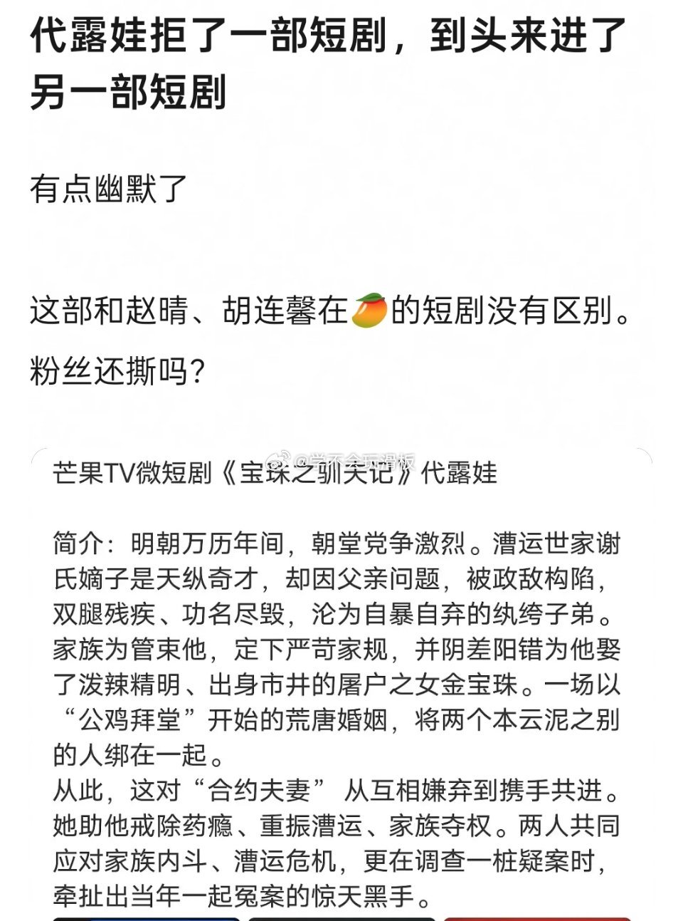 代露娃要去演短剧了,去年她也算配角出圈的代表吧?那个时候都在夸她的演技。怎么会选