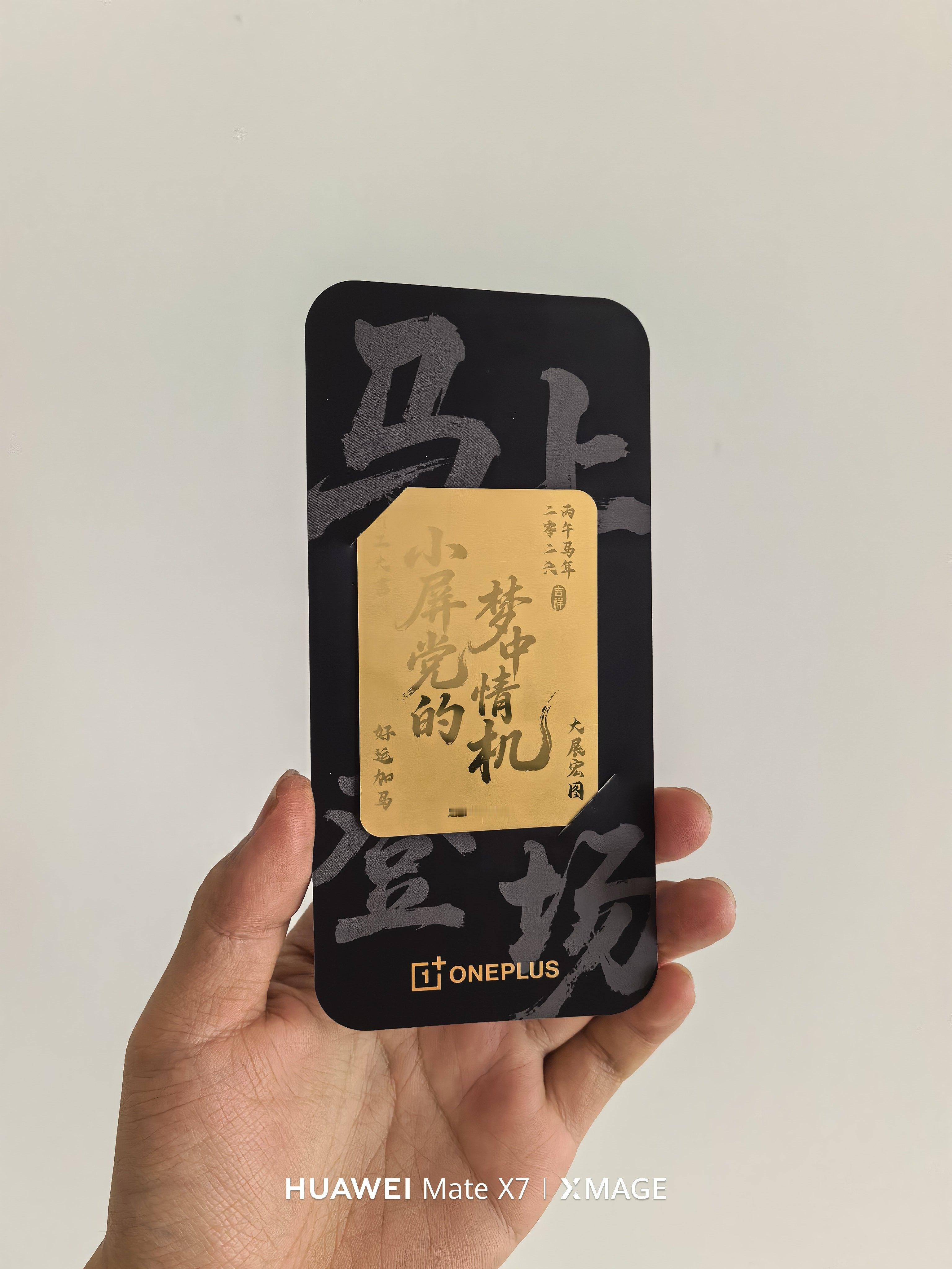 马年开工大吉!收到一加还给了这个开工利是,打开是一个足金的卡片,上面写着“小屏党的梦中情机”。大胆猜一下这应该是一加15T 要来了!一加总裁李杰称其为小屏大魔王,新机尺寸很有可能保持了6.32英寸,这和开工利是中黑色底卡的大小差不多,的确是有点小巧思。并且在系统流畅度、游戏、影像、屏幕和充电各方面,预计都会有不小提升!喜欢小屏手机的朋友可以狠狠期待一下啦! 西安