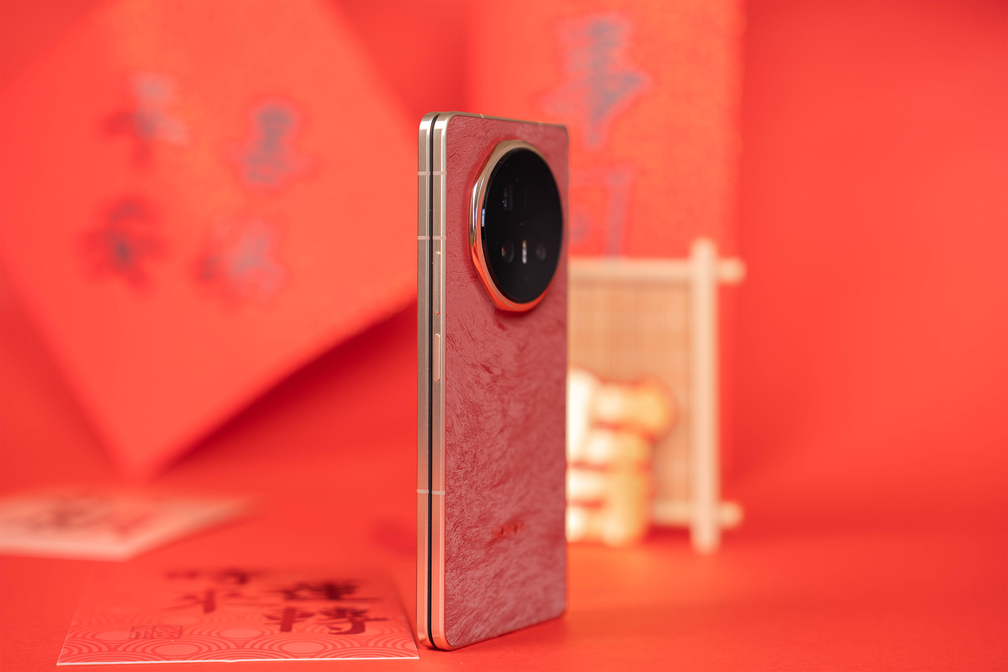 开年第一款折叠屏新机,荣耀Magic V6,赤兔红这个配色太好看了!赤兔取自三国名驹,红得沉稳不艳俗,搭配金色中框 + 星轨纹理的八边穹顶镜头模组,非常有高级感。后盖是绒马环保皮 + 超级纳米涂层,法式奢绒质感,亲肤不沾指纹,还具备防水、耐刮、耐腐蚀的实用属性,告别素皮娇贵的痛点。