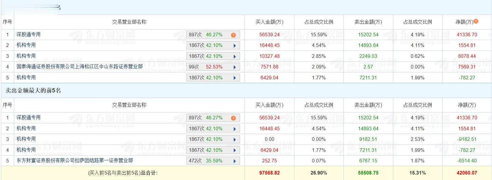 格隆汇2月24日|深南电路(002916.SZ)今日涨停,换手率2.14%,成交额36.27亿元。龙虎榜数据显示,深股通买入5.65亿元,卖出1.52亿元,净买入4.13亿元;游资“中山东路”位列买四席位,净买入7569万元。上榜席位全天买入9.76亿元,卖出5.55亿元,合计净买入4.21亿元。(格隆汇)