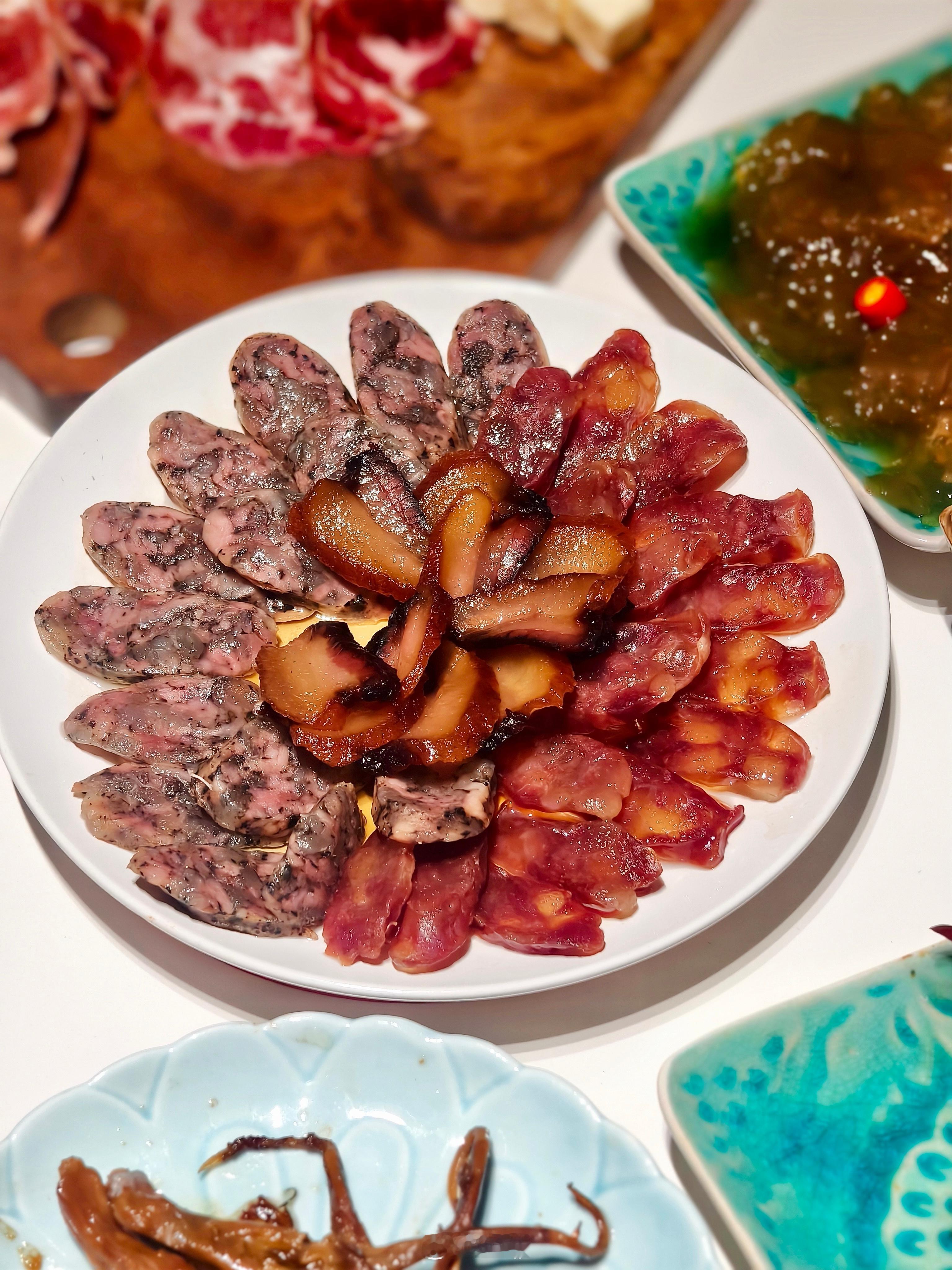 玫瑰花火腿配奶酪黑松露香肠腊肉三拼陈皮鸭舌蒜蓉黄瓜老醋海蜇墨鱼大烤炙烤肋排聚宝盆菜青椒肚片薄荷巧克力蛋糕卷