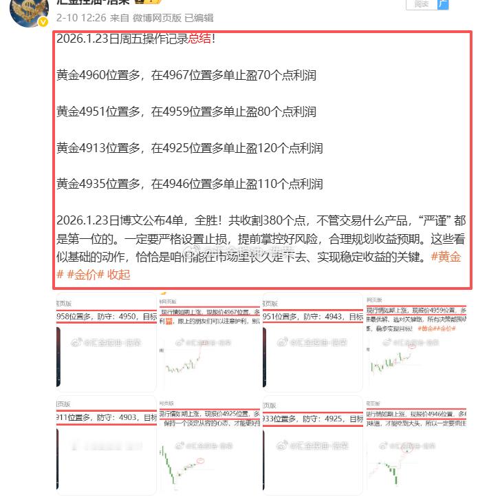 2026.1.23日周五操作4单,全胜,共斩获380点利润网页链接
