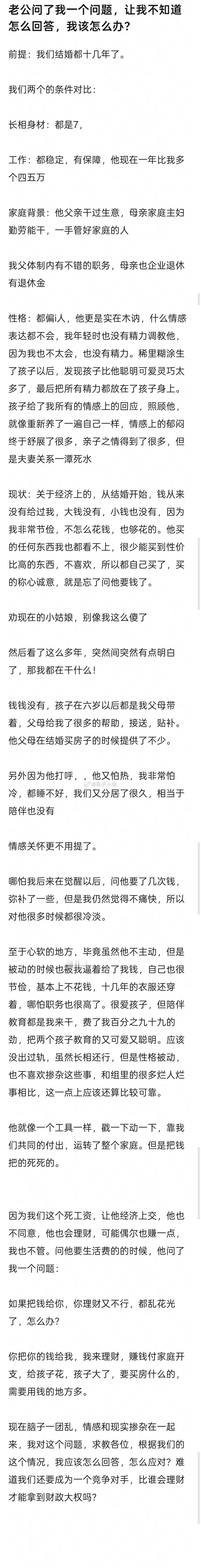 老公问了我一个问题,让我不知道怎么回答,我该怎么办?