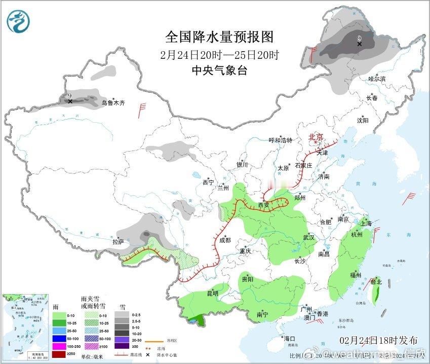 【南方多雨】昨晚到今天,新疆北部昨晚到今天出现较大范围降雪。未来3天,新疆天山沿