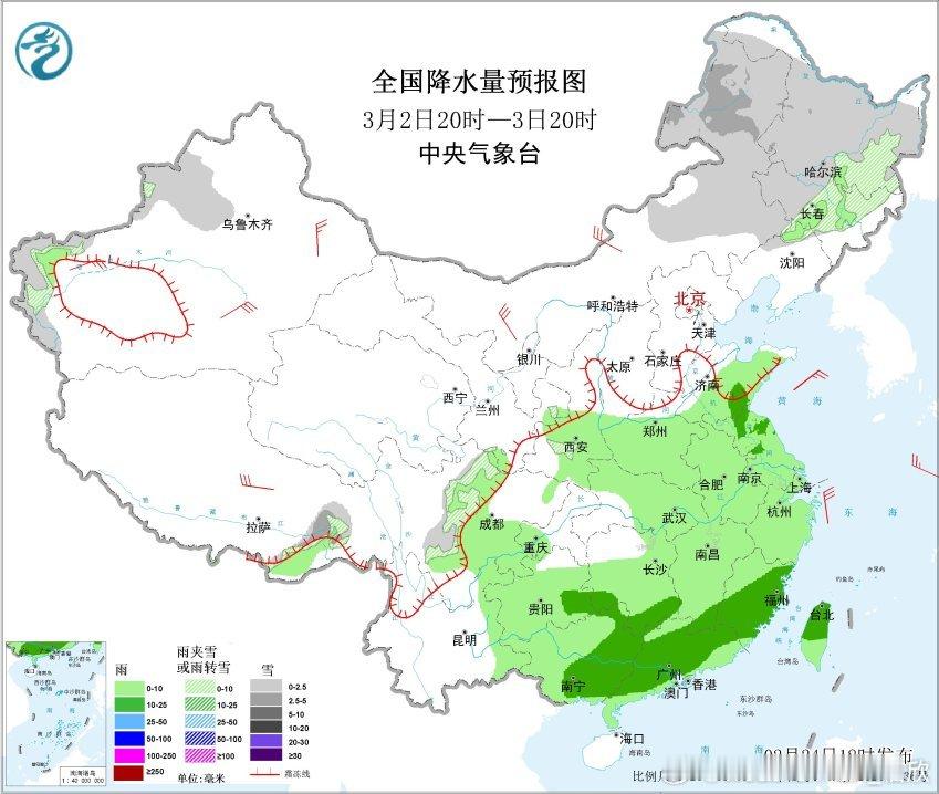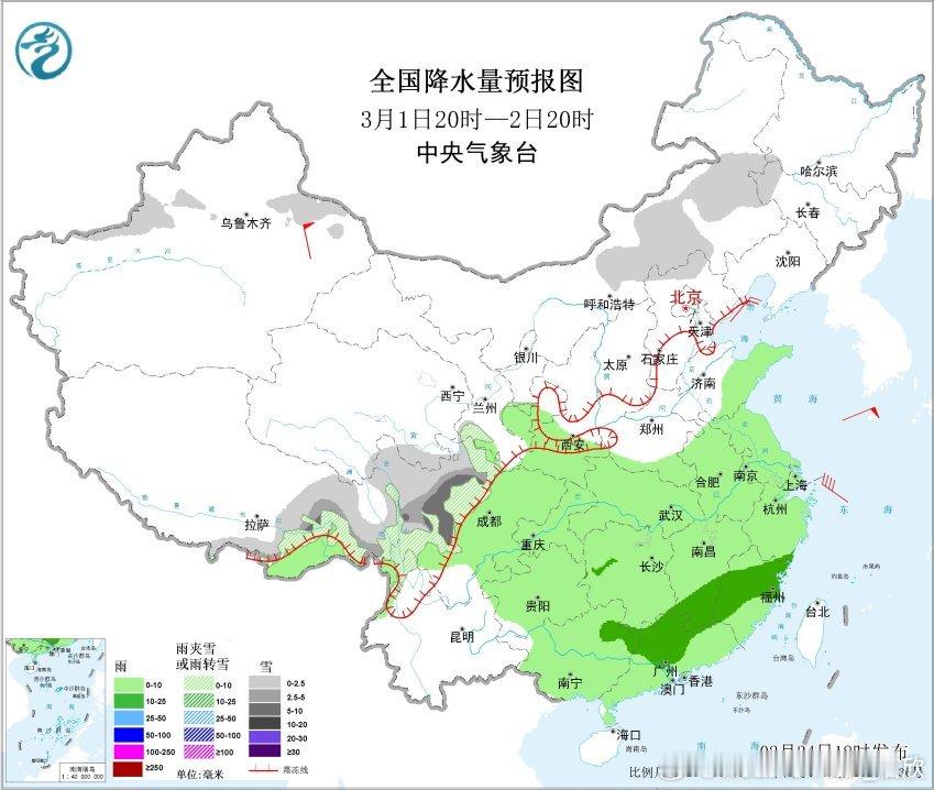 后天气旋头部的降雪主要在黑龙江,气旋的冷锋扫过山西河北北京辽宁吉林,也可能导致短暂降雪或雨转雪。另外2月28日-3月1日还有弱冷空气影响北方,在甘肃陕西山西河北天津辽宁吉林内蒙古等地也可能有降雪或雨转雪。