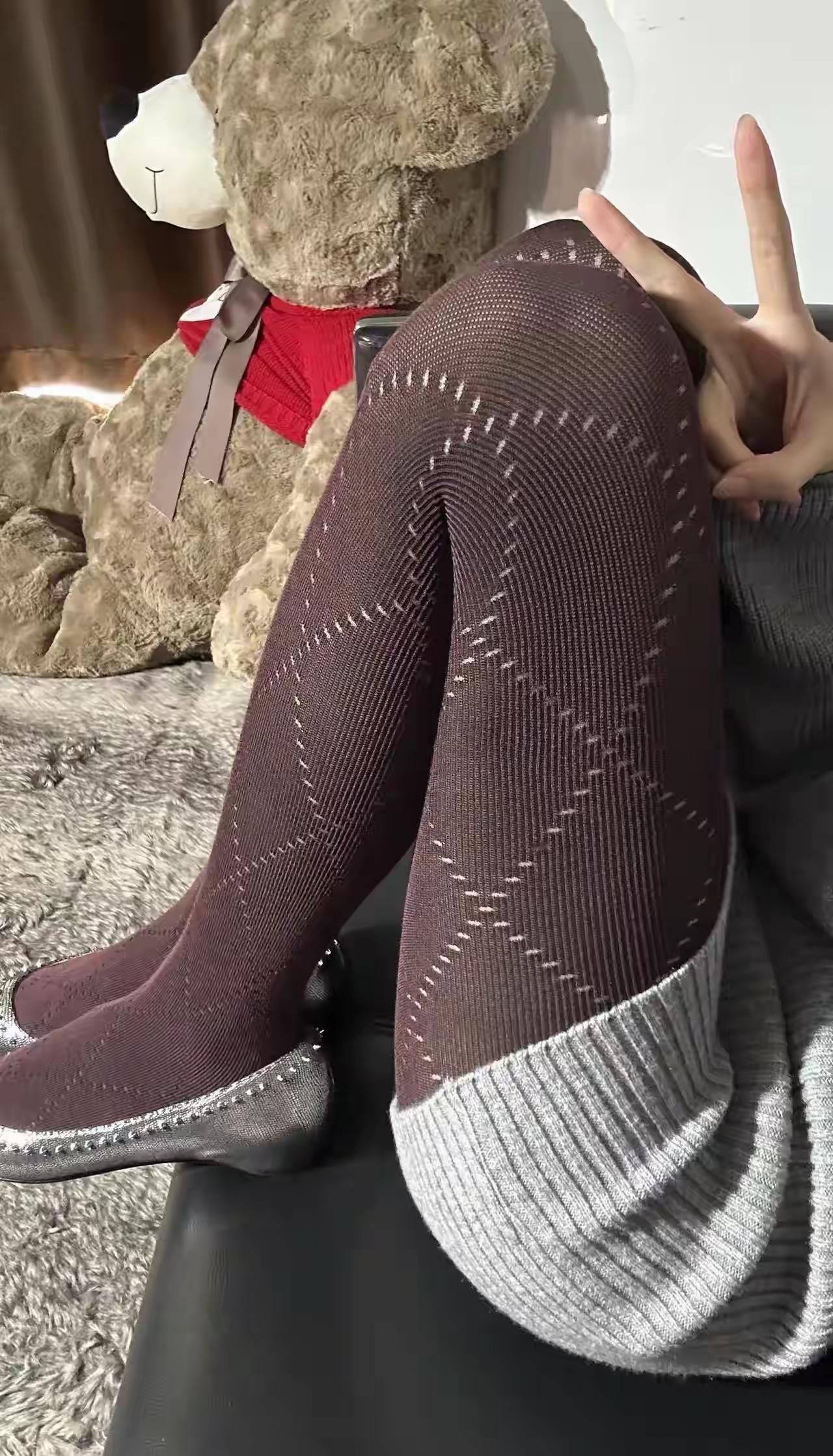 时尚尖头高跟鞋,搭配紫色针织袜,尽显优雅气质!