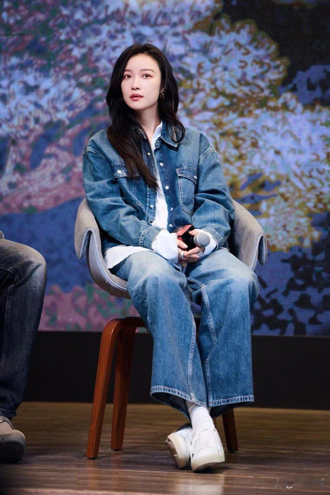 倪妮的气质真的太出挑了!牛仔外套叠搭白衬衫+阔腿裤,随性时髦还超减龄,高级感拉满