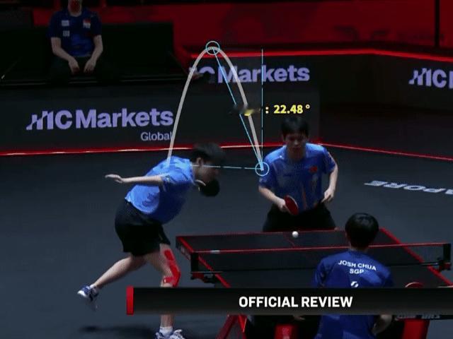2026WTT新加坡大满贯裁判觉得黄友政的发球回抛罚分,黄友政提出鹰眼挑战👀挑战结果显示抛球角度22.48°,发球合规,挑战成功