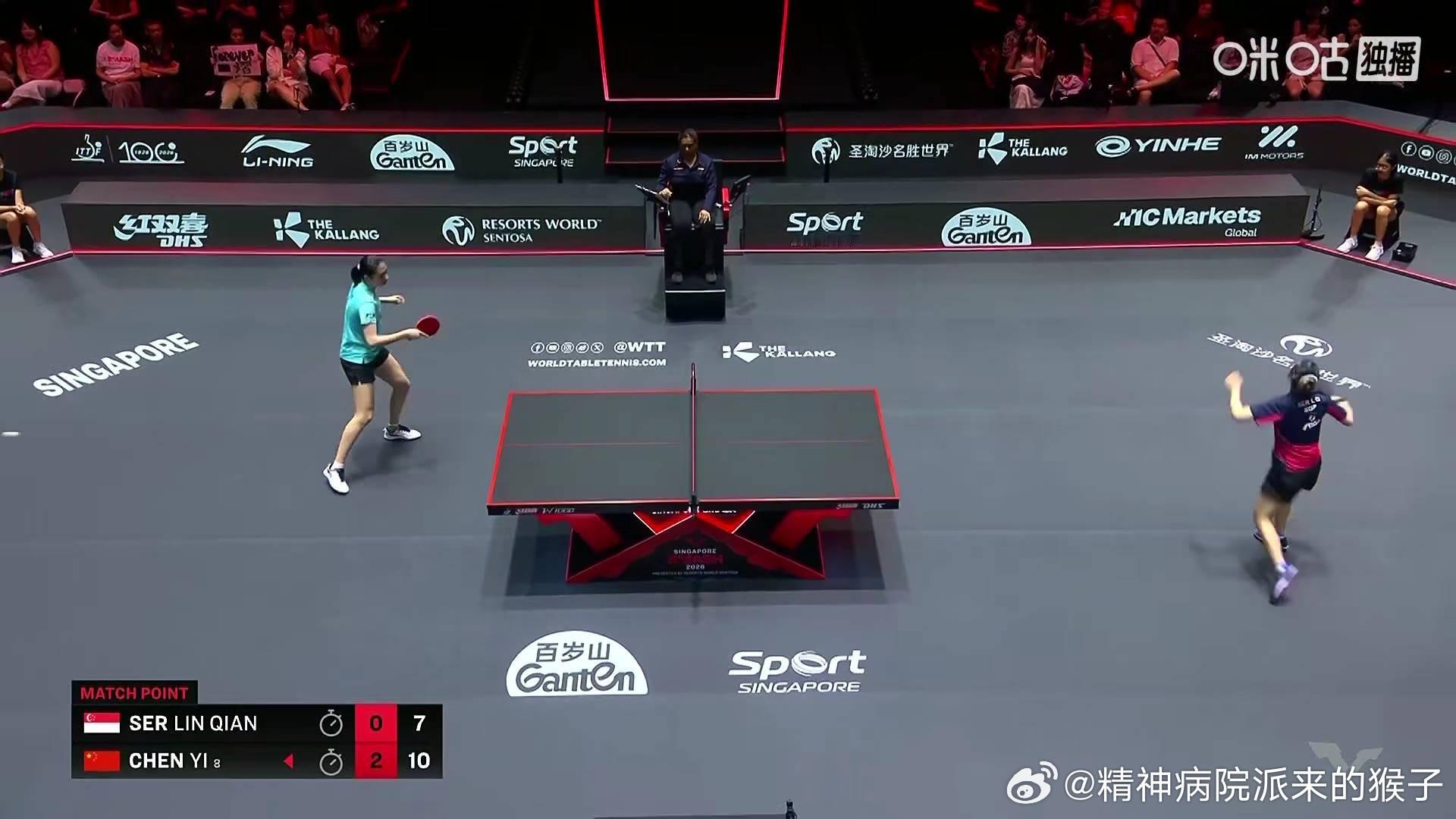 陈熠3比0舒麟茜(8,11,7)晋级2026WTT新加坡大满贯女单十六强下一轮: