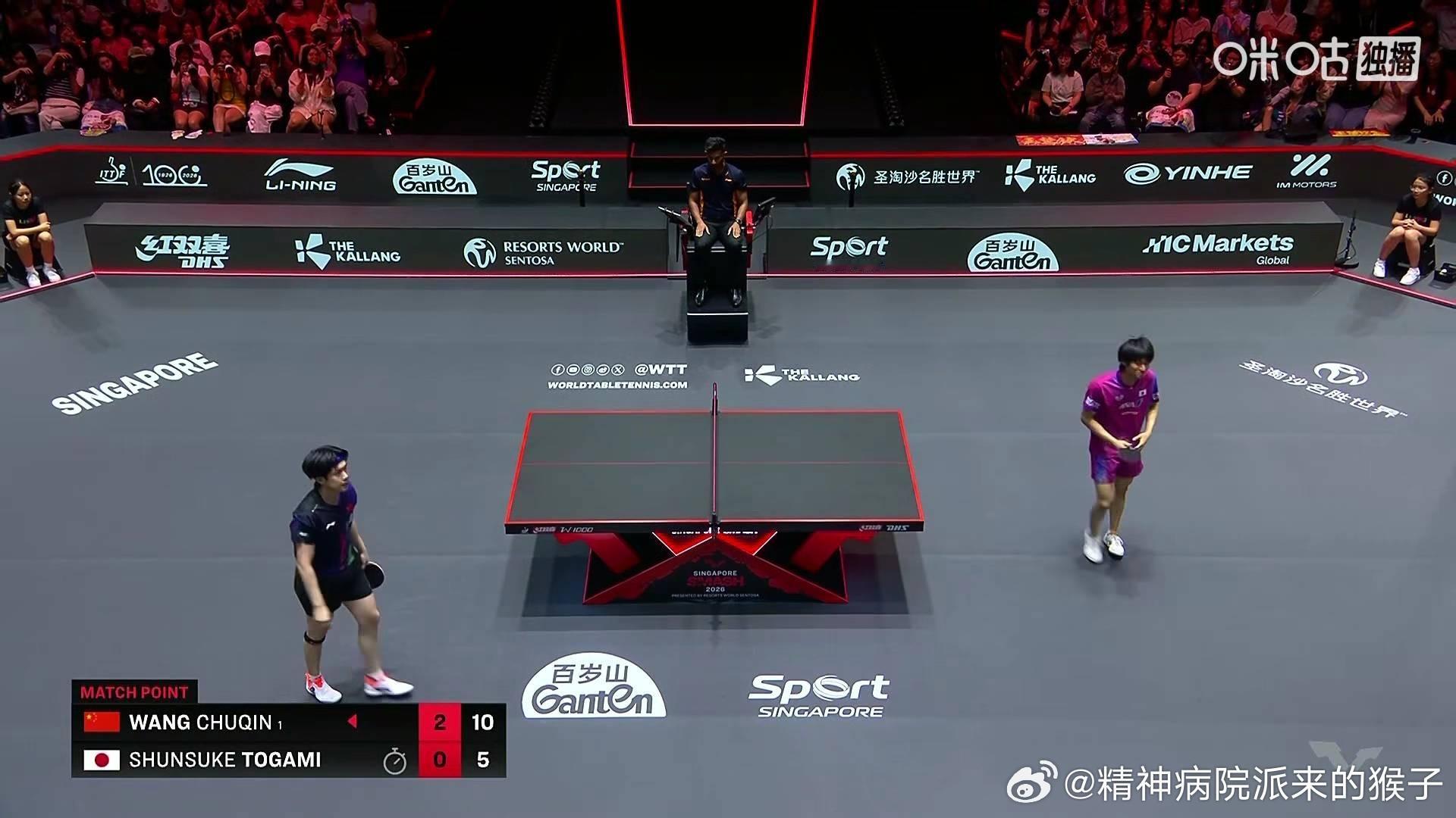 王楚钦3比0户上隼辅(9,8,5)林德3比0贝塔斯迈尔(8,7,9)晋级2026WTT新加坡大满贯男单十六强下一轮:王楚钦🇨🇳VS林德🇩🇰