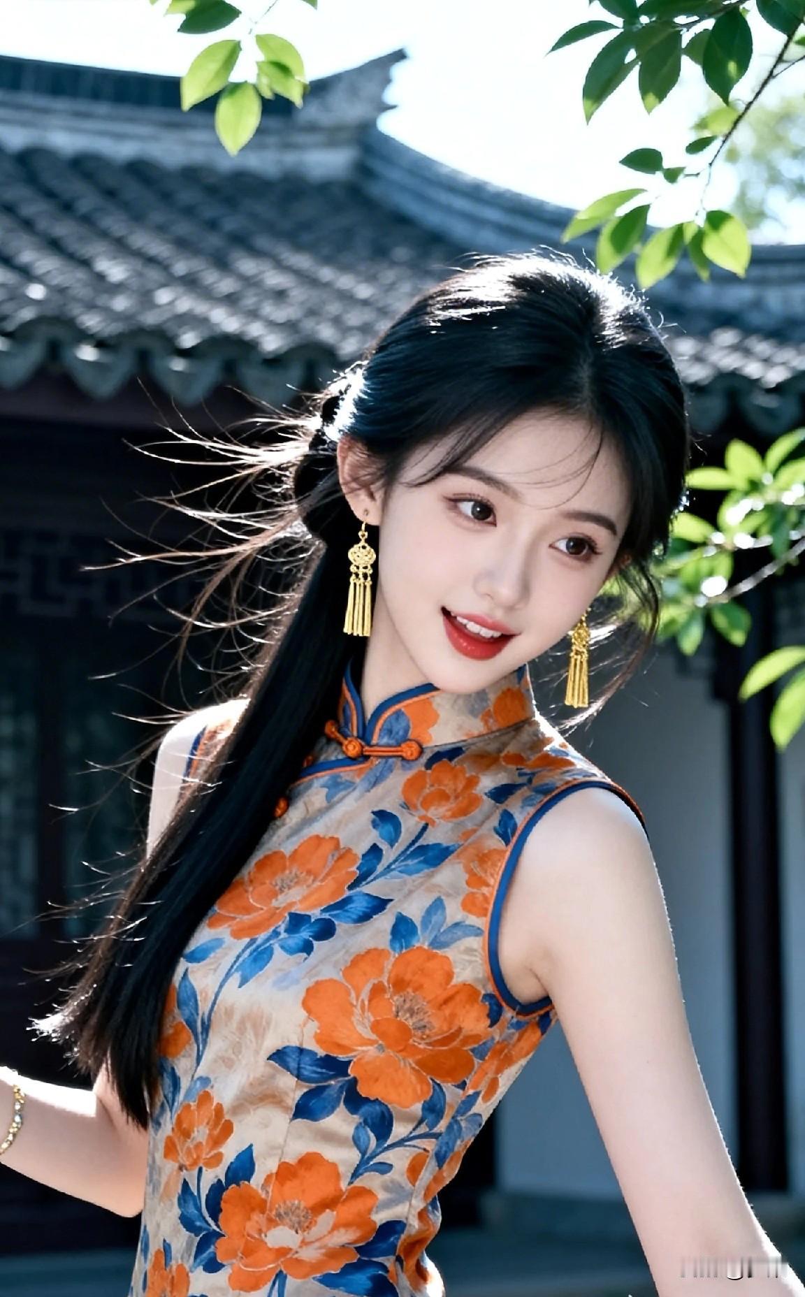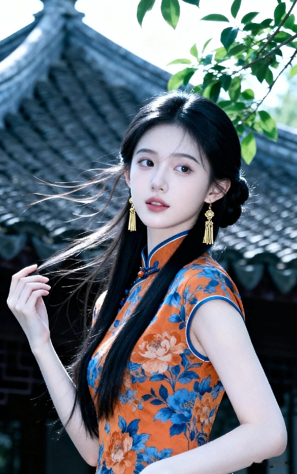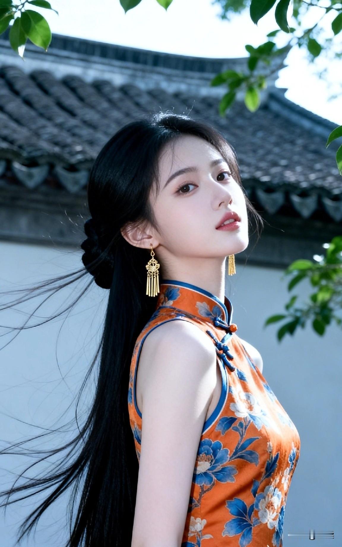 就像这一身橙蓝交织的繁花,不必刻意收敛,让它在江南的风里舒展。把自信缝进立领,把温柔藏进盘扣,让每一步都带着自己的节奏。 它不是束缚,而是让你更清晰地看见自己的美。当你自在舒展,旗袍便会成为你气质的注脚,独一无二,无可替代。