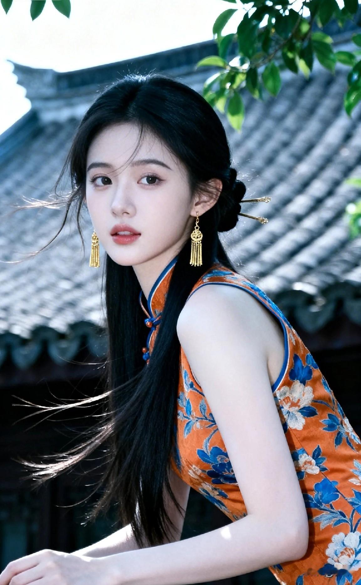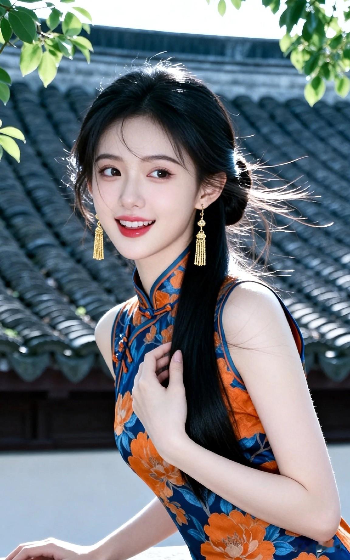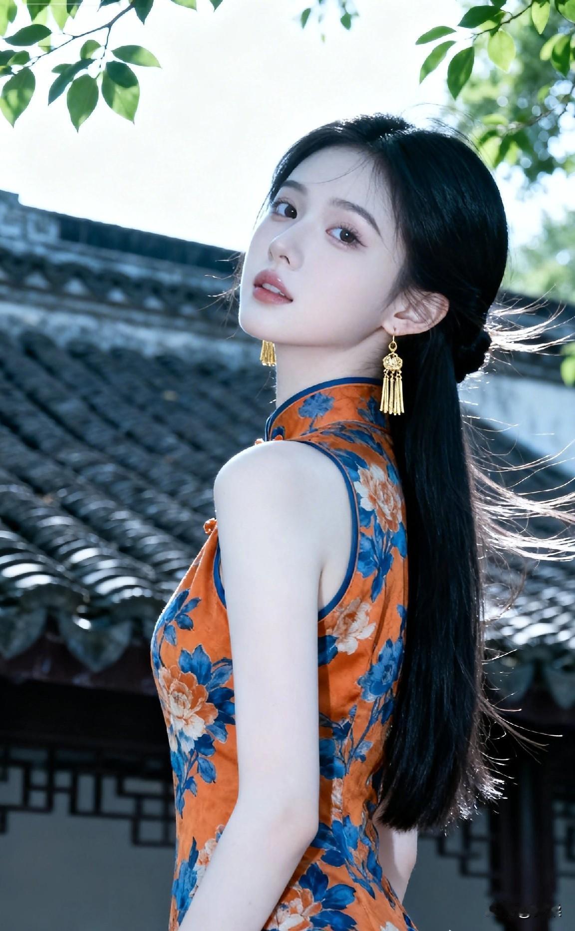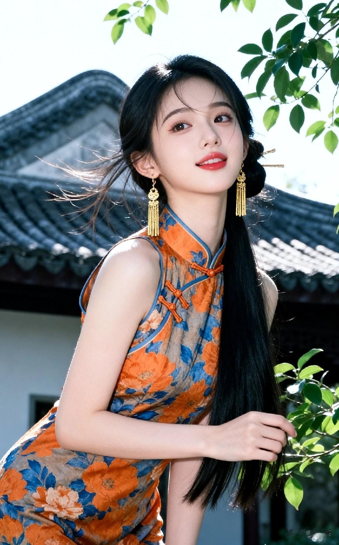 就像这一身橙蓝交织的繁花,不必刻意收敛,让它在江南的风里舒展。把自信缝进立领,把温柔藏进盘扣,让每一步都带着自己的节奏。 它不是束缚,而是让你更清晰地看见自己的美。当你自在舒展,旗袍便会成为你气质的注脚,独一无二,无可替代。