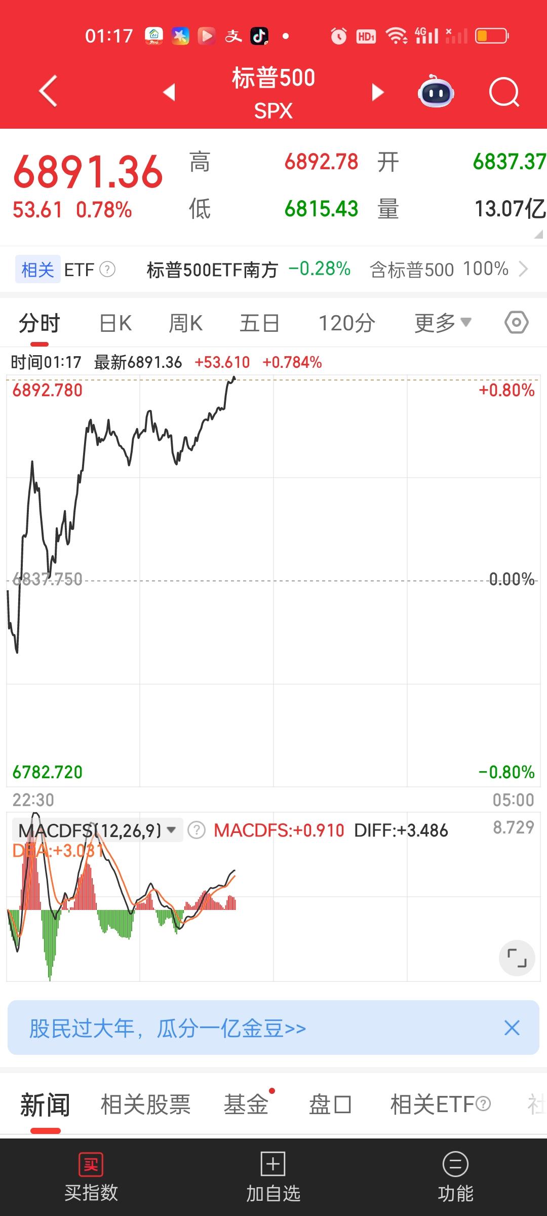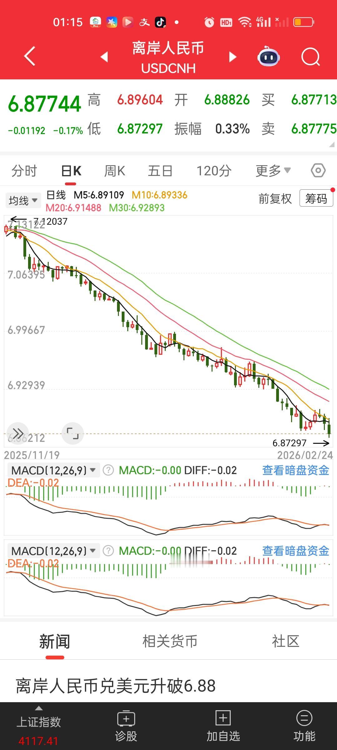 从此刻的外围数据来看,走的还是不错的,美股全线飘红,期货方面富时A50,恒生指数主连,恒科期货主连也都是涨的,离岸人民币还在继续升值。再创新高。外围数据目前走的没啥问题。